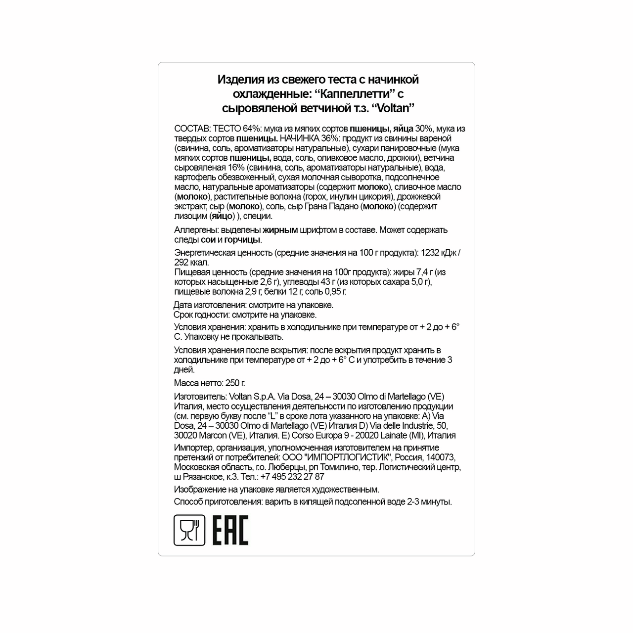 Каппеллетти Voltan с сыровяленой ветчиной, 250г