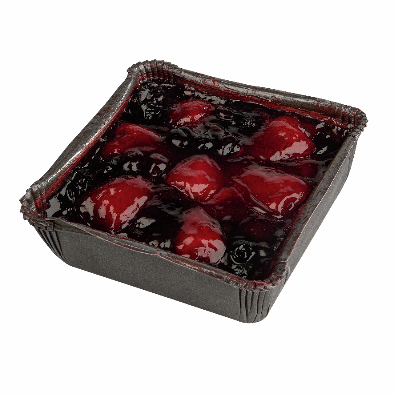 Ягоды (клубника, черная смородина, черника), сахар, мука пшеничная в/с, масло подсолнечное, молоко сухое цельное, яйцо куриное пищевое, патока крахмальная, крем на растительных маслах (жир растительный, сахар, белок молочный, эмульгатор лецитин, соль, ароматизатор, краситель каротины), стабилизатор глицерин, комплексная пищевая добавка (сахар, желирующий агент пектин, регулятор кислотности лимонная кислота), крахмал пшеничный, комплексная пищевая добавка (гидрогенизированное кокосовое масло, глюкозный сироп, молочный белок, стабилизатор эфиры уксусной и жирных кислот), регулятор кислотности лимонная кислота, стабилизаторы (глицерин, камедь рожкового дерева), консервант сорбат калия, соль, краситель свекольный красный, ароматизатор Ваниль, ароматизатор Малина.