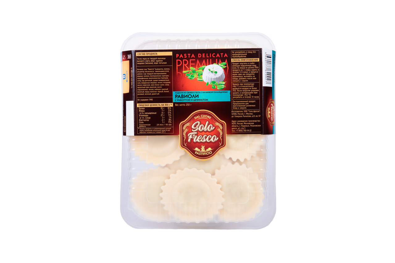 Равиоли Solo Fresco с рикоттой и шпинатом охлажденные, 250г