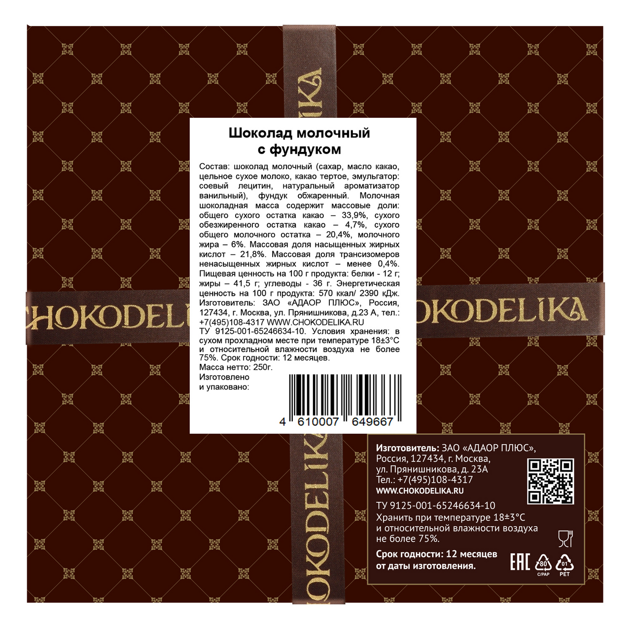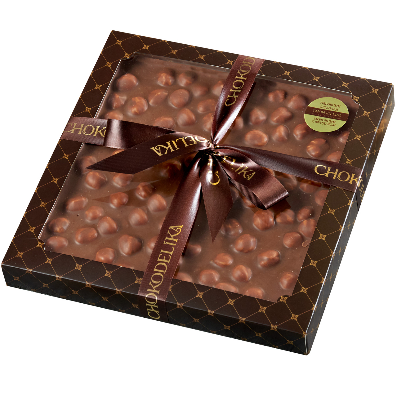 Шоколад Chokodelika молочный с фундуком в коробке с ленточкой, 250г