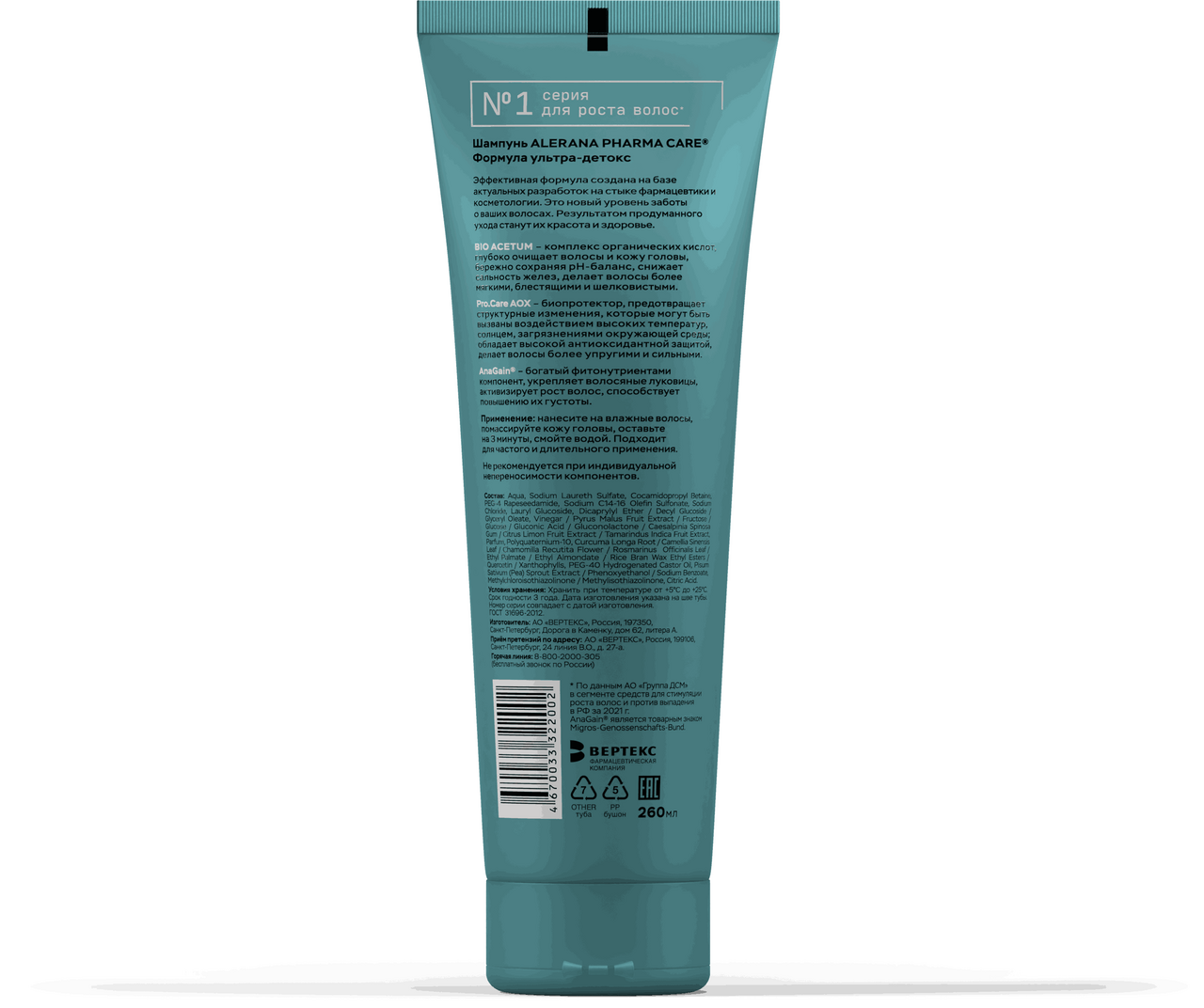 Шампунь Alerana Pharma Care формула ультра детокс, 260мл