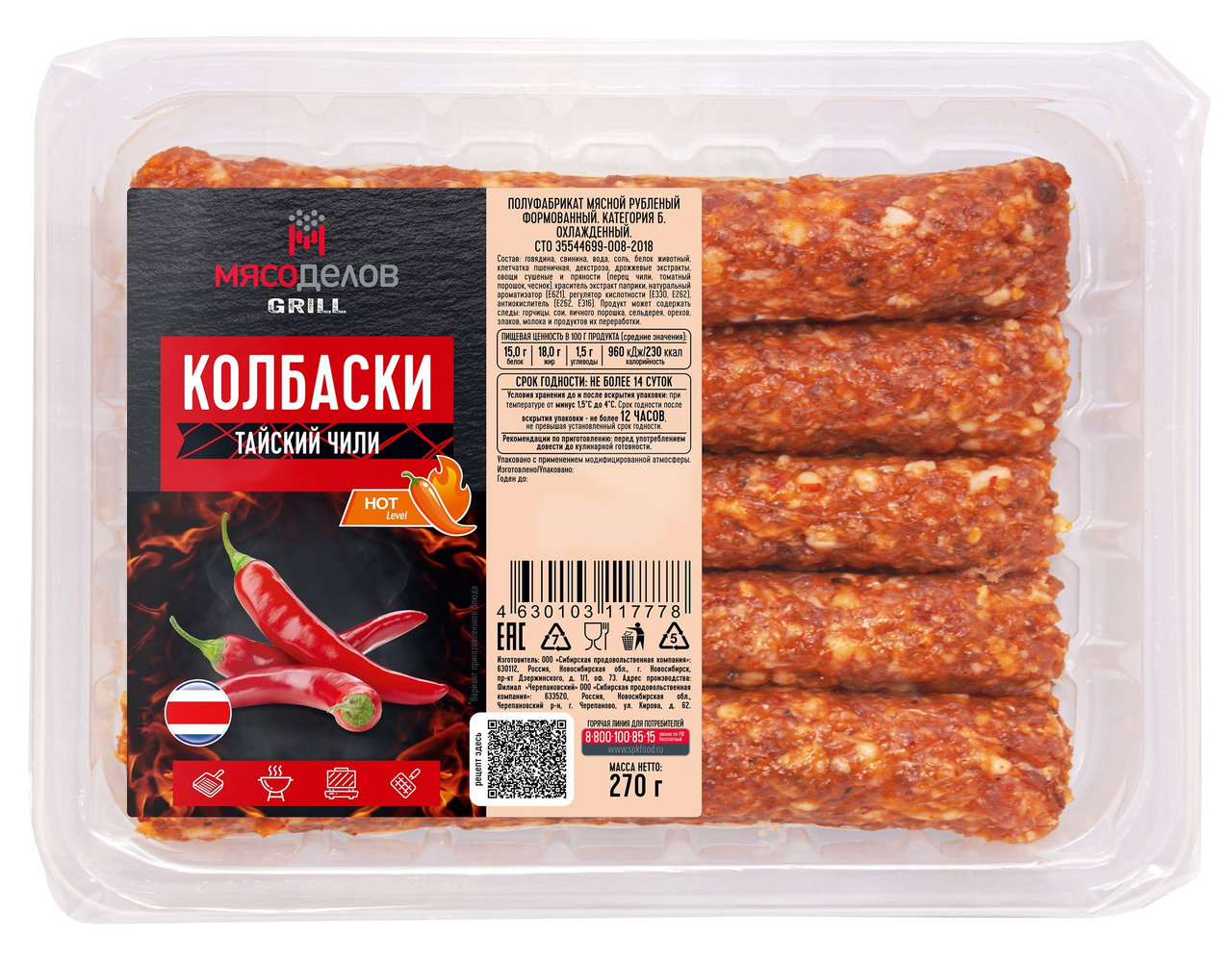 Колбаски из говядины Мясоделов Тайский чили охлаждённые, 270г