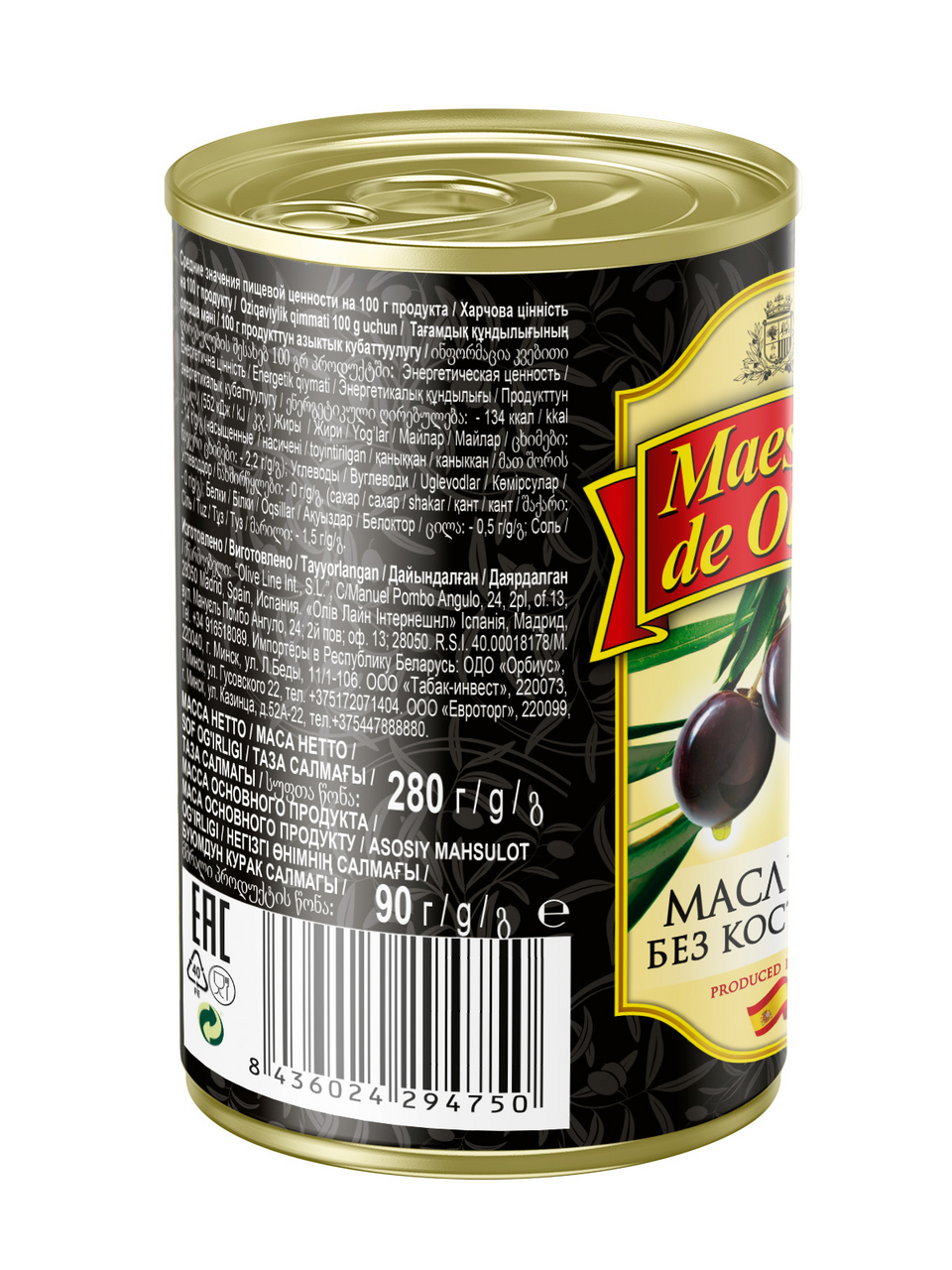 Это высококачественный консервированный продукт. Маслины богаты питательными веществами и витаминами, являются ценным источником пектина, отвечающего за восстановление хрящевой ткани и регенерацию кожи. Высокий процент содержания йода делает этот продукт чрезвычайно полезным для регулярного употребления, а природные масла обеспечивают организм необходимыми жирными кислотами, способными регулировать уровень холестерина в крови и улучшать процесс обмена веществ. Приготовлены из отборных плодов, имеют твердую структуру, которая не теряет форму. Продукт отличается нежным в меру соленым вкусом. Прекрасно подойдет как дополнение к блюдам Средиземноморской кухни, закускам, пицце, канапе, для украшения различных блюд.