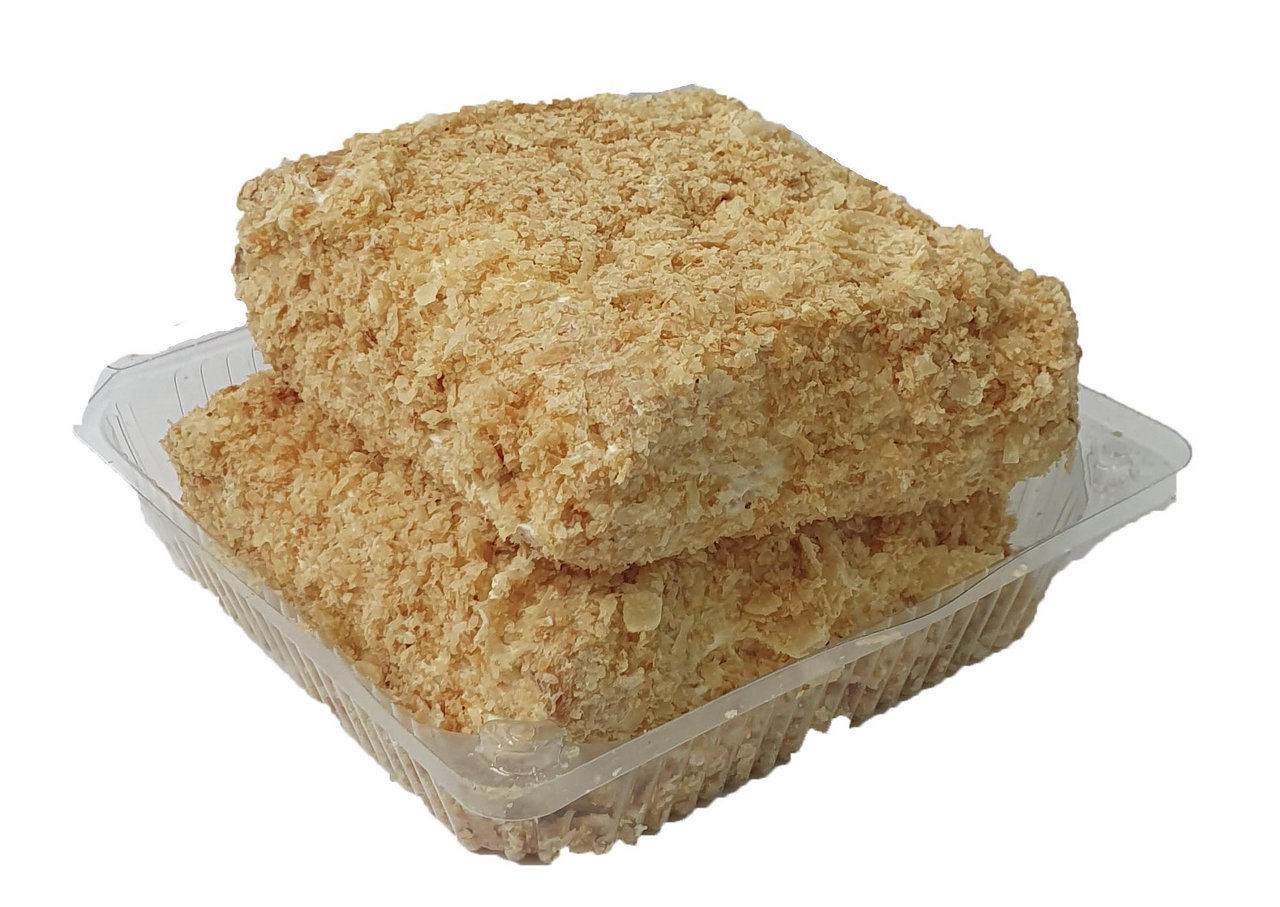 Коржи: слоеное бездрожжевое тесто. Крем: масляный. Классическое пирожное с лёгким ароматом ванили изготовлено из нежного слоёного теста и заварного сливочно-ванильного крема. Воздушный десерт украшен слоёной крошкой и сахарной пудрой.
