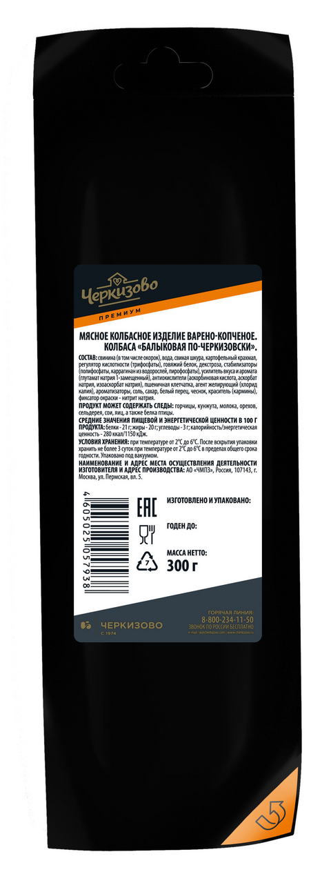 Колбаса Черкизово Балыковая Премиум варено-копченая, 300г