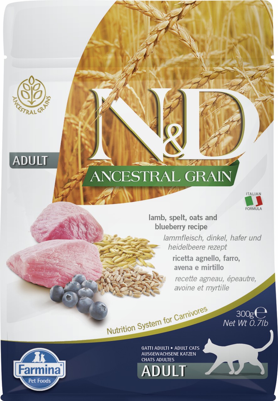 Корм сухой Farmina N&D для кошек ягненок-черника-злаки, 300г