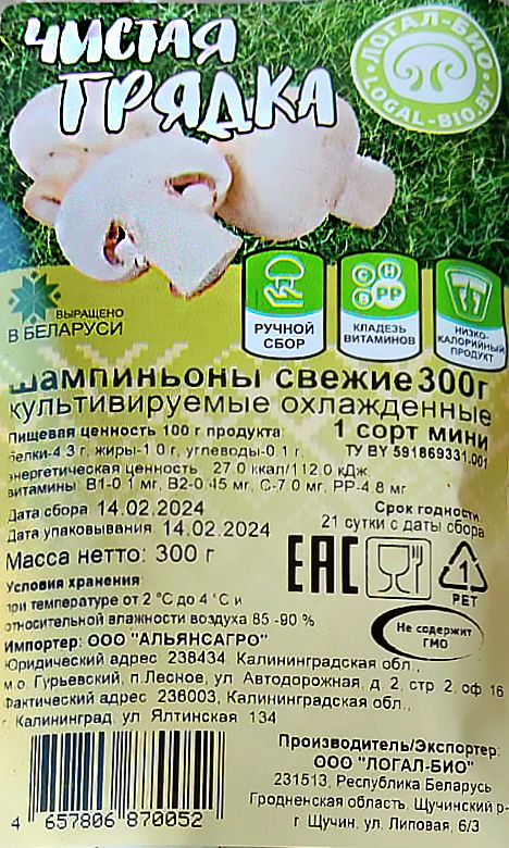 Экологически чистые культивируемые грибы, собранные и откалиброванные вручную. Благодаря небольшому размеру идеально подходят для засолки и маринования. Кроме того, могут использоваться для приготовления супов, супов-пюре, крем-супов, салатов, вторых блюд, соусов, закусок, а также начинок для пиццы, вареников, пирожков и пирогов. Гармонично сочетаются с овощами, рисом, гречневой крупой, курицей, свининой, сметаной, сыром, сливками, семгой. Рекомендованные способы обработки: жарка, варка, запекание, тушение. Эти грибочки очень полезны: они обогащают организм клетчаткой, витаминами B2, В5 и PP, цинком, селеном, медью и фосфором; выводят токсины; снижают уровень плохого холестерина; помогают продлить молодость и укрепить иммунитет.