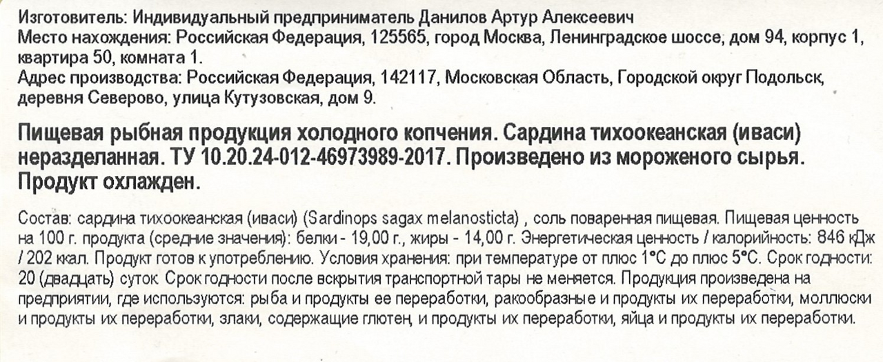 Вкус и качество копченой рыбы напрямую зависит от процесса копчения. Для этого используется все лучшее: в настоящей глиняной печи ручной работы, ароматный дымок натуральных ольховых опилок густо обволакивает рыбку и придает ей золотой оттенок, терпкий аромат и неповторимый нежный вкус. Сочное жирное мясо обладает умеренно соленым вкусом и нежной текстурой. Ароматные кусочки можно подать к столу как в будни, так и в праздничные дни. Они великолепно сочетаются с отварным молодым картофелем и выступают в качестве самостоятельной закуски с ломтиком ржаного хлеба. Натуральное холодное копчение на ольховой щепе придает иваси аппетитный золотистый оттенок и приятный дымный аромат. Этот метод приготовления рыбы сохраняет большую часть ее полезных свойств и не позволяет скапливаться излишкам воды. Сардина содержит жирные кислоты, обладающие противовоспалительным эффектом, йод, цинк и другие полезные микроэлементы.