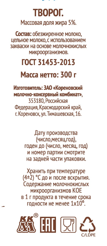 Натуральный продукт, изготовленный из свежего молока с собственных ферм компании-производителя с добавлением сычужной закваски. По вкусовым качествам и консистенции он идентичен настоящему деревенскому творогу, но по чистоте намного превосходит его благодаря ультрасовременным технологиям, используемым в процессе производства. Нежный и рассыпчатый, обладающий классическим кисломолочным вкусом, он хорош как в чистом виде, так и в составе различных блюд: запеканок, сырников, вареников, ватрушек. Творог станет быстрым и полезным завтраком, а также подойдёт для приготовления различных диетических и десертных блюд: запеканок, сырников, ПП-чизкейков.