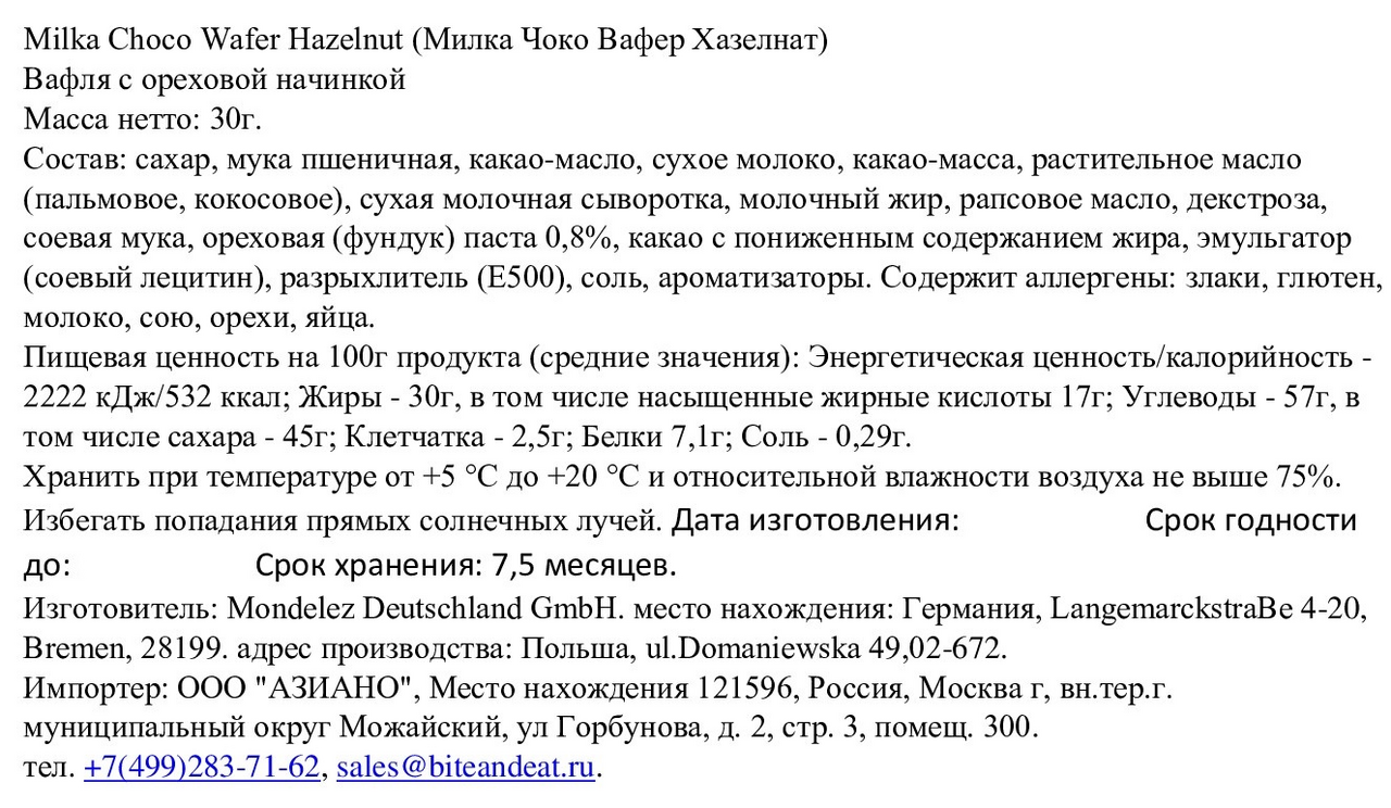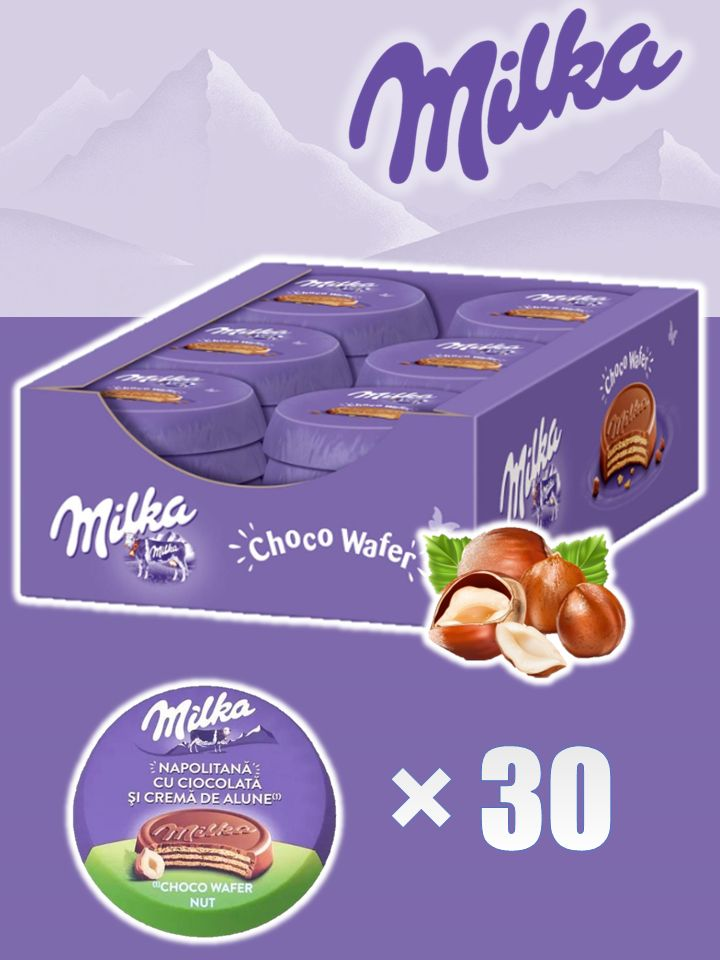 Вафли Milka Choco Wafer с ореховой начинкой, 30г x 30 шт - это хрустящее лакомство, которое сочетает в себе нежность молочного шоколада Milka и хрустящую текстуру вафель. В каждой вафле вы найдёте кусочки орехов, которые придают ей насыщенный вкус и аромат. Каждая вафля Milka Choco Wafer Nut - это идеальное сочетание шоколада, хрустящего вафельного слоя и орехов.