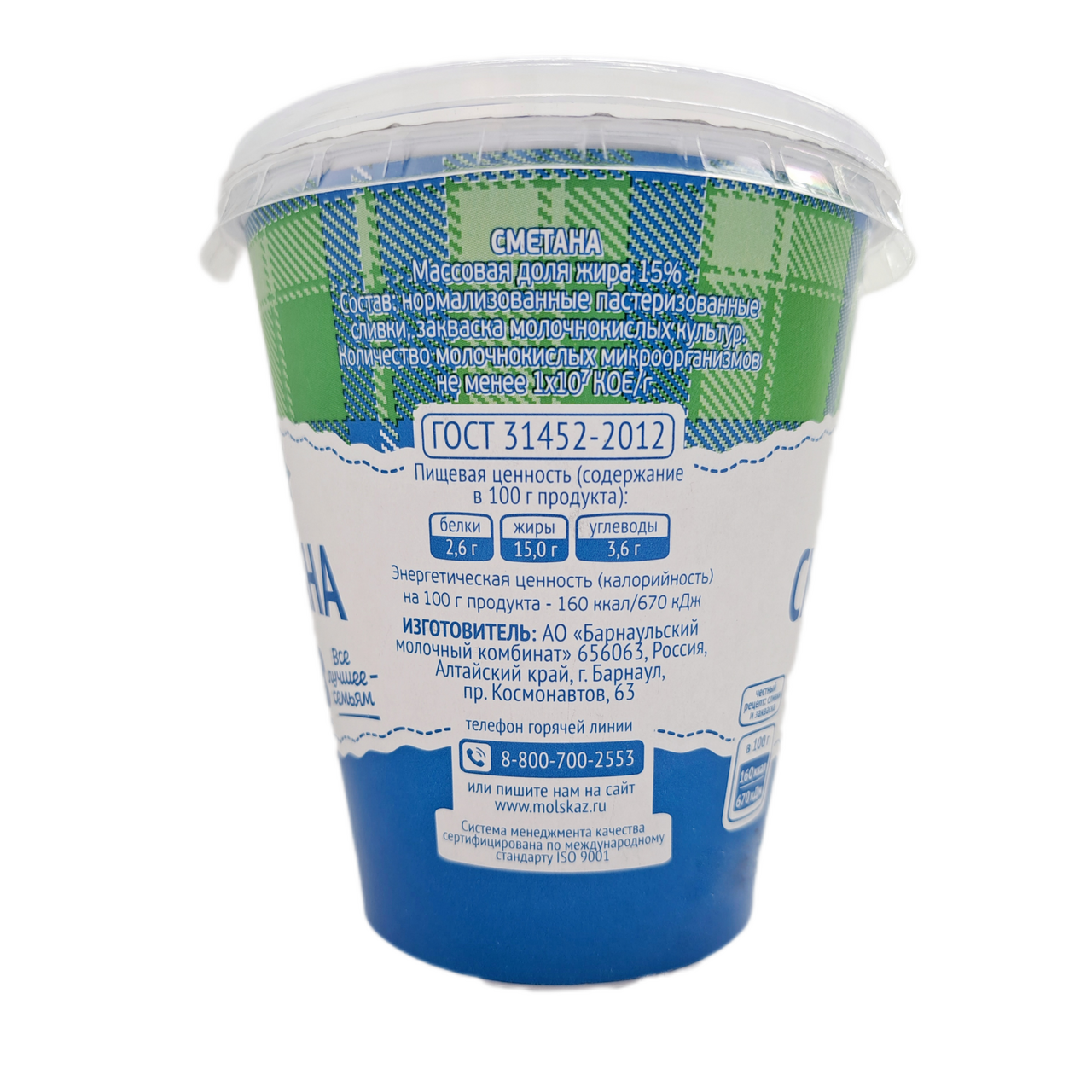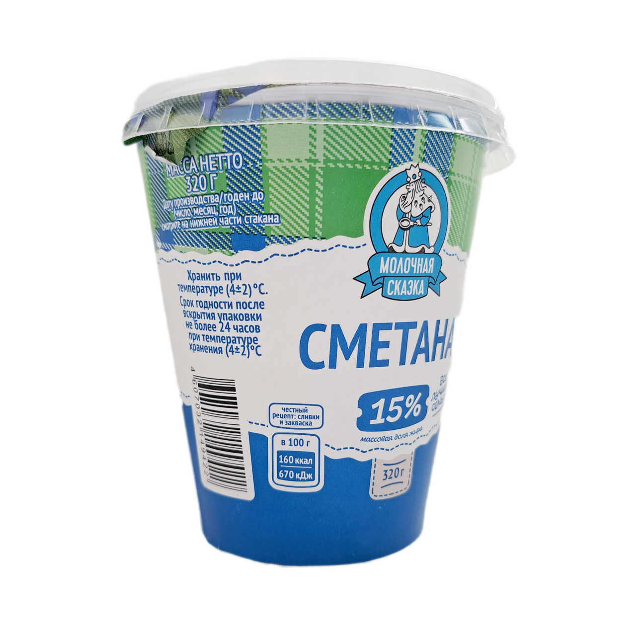 Сметана Молочная сказка 15%, 320 г - натуральный продукт с полезным составом. Сметана богата витаминами, кальцием, калием и аминокислотами. В составе содержится большое количество кальция, железа, фосфора и витаминов С, Е, А, группы В, которые необходимы для нормальной работы организма. При регулярном употреблении сметаны стабилизируется работа желудочно-кишечного тракта, укрепляется иммунитет, улучшается состояние кожи, выводятся токсины из организма. За счет большого содержания кальция укрепляются костные и мышечные ткани, ускоряется процесс восстановления после физических упражнений. Производится по традиционной технологии. Выделяется натуральным сливочным вкусом и бархатной текстурой. Сметана не расслаивается, густой консистенции. Жирность составляет 15%. Добавлять сметану можно в горячие блюда, готовить на ее основе соусы или крема для выпечки, заправлять салаты, добавлять в творог.