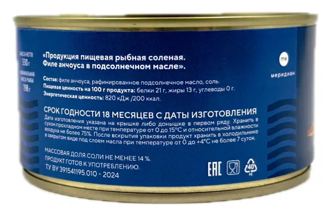 Филе анчоуса, рафинированное подсолнечное масло, соль.