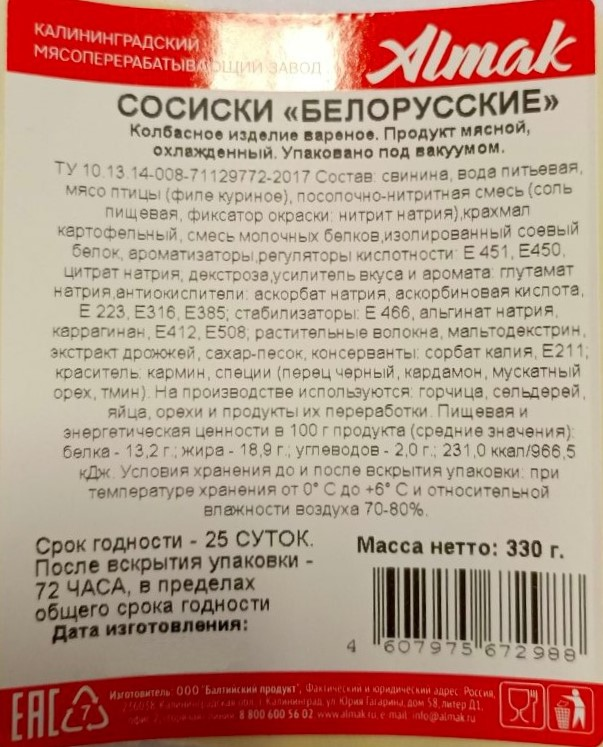 Сосиски Альмак Белорусские, 330г