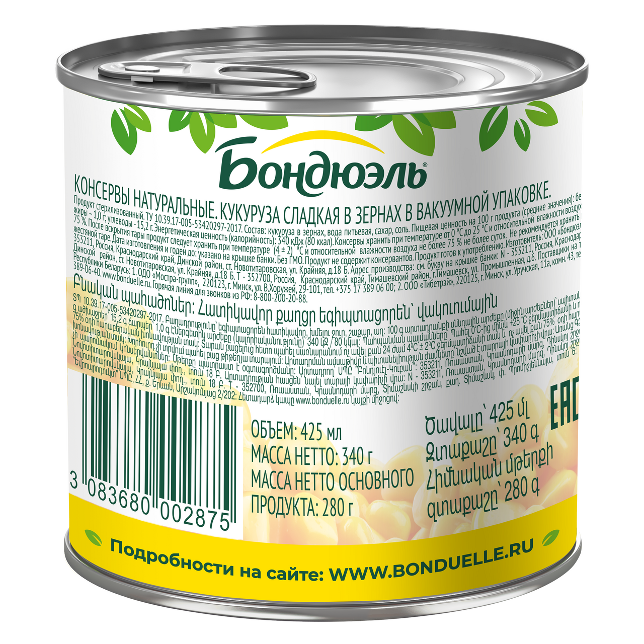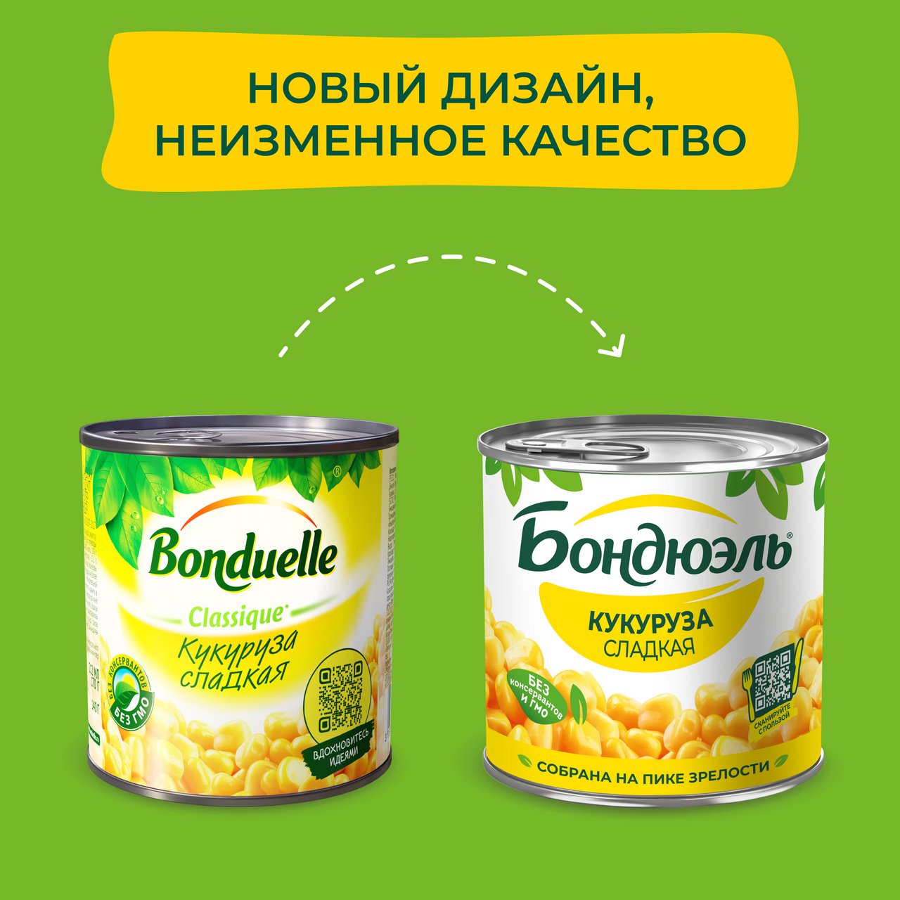 Тот самый чудесный вкус, которые многие помнят с детства! Сладкая кукуруза тщательно отбирается, прежде чем попасть в банку, процесс от сбора с грядки до упаковки проходит всего за 4 часа, поэтому на вашем столе всегда самые отборные, сочные и золотистые зерна. Создавайте классические, традиционные блюда с сочной и универсальной кукурузой от Бондюэль.