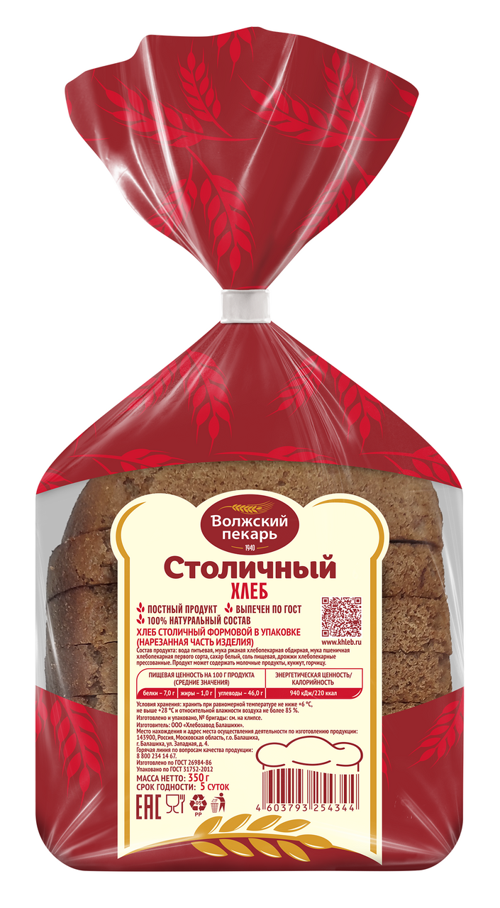 Хлеб Волжский пекарь Столичный нарезка, 350г