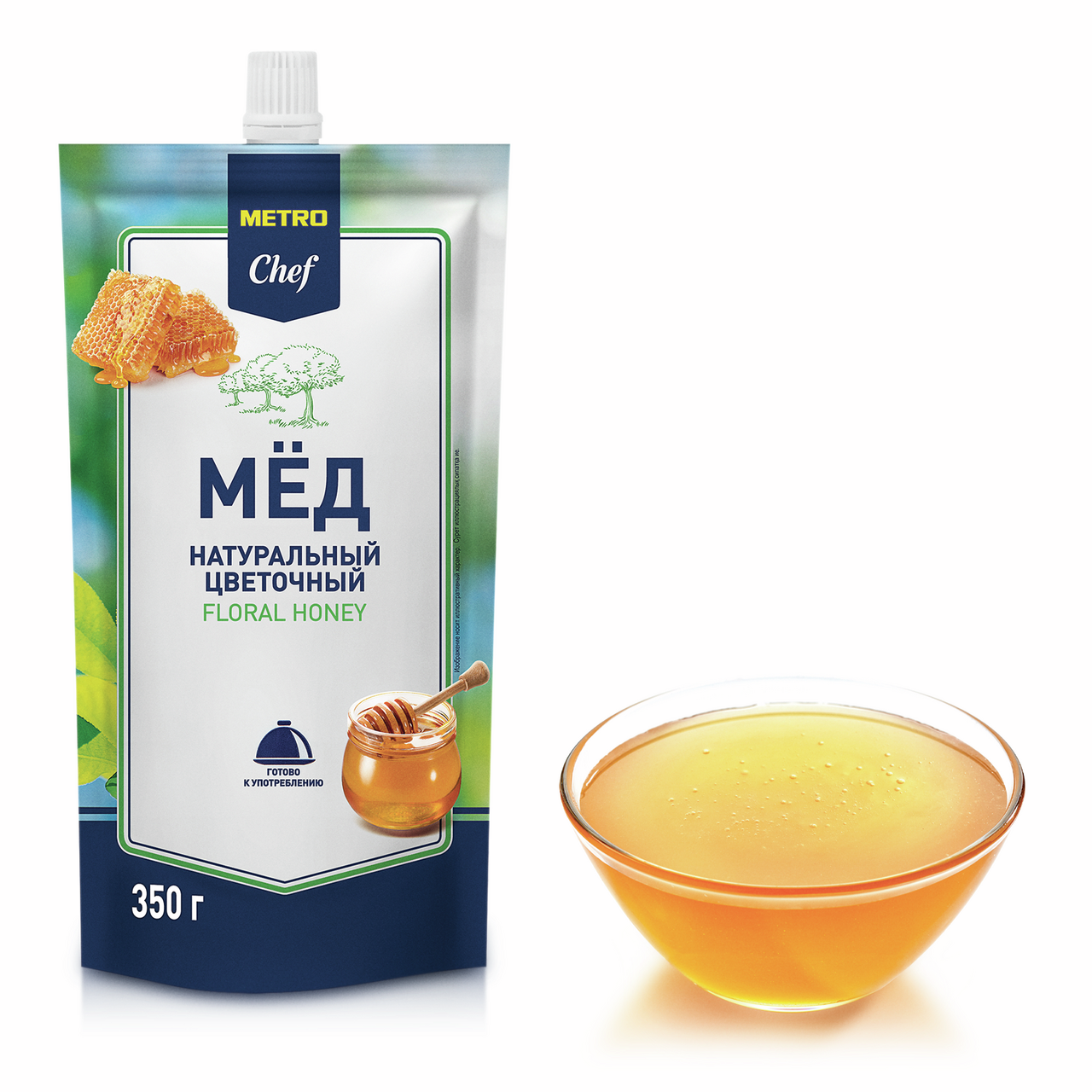 METRO Chef Мед цветочный дой-пак, 350г в удобном формате хорошо подходит для использования дома и в дороге. Лакомство собрано с лугов, расположенных в экологически чистых регионах. Благодаря этому обладает богатым составом и мягким, слегка травянистым вкусом с приятным продолжительным послевкусием. Сладкий продукт соединяет пыльцу и нектар с нескольких растений, поэтому приносит максимальную пользу организму. Это источник легкоусвояемых углеводов (фруктозы, глюкозы), белков, аминокислот, биологически активных веществ, а также широкого спектра витаминов и микроэлементов. Цветочный мед тонизирует, ускоряет заживление ран, стимулирует иммунную систему, активно борется с симптомами респираторных заболеваний, очищает от токсинов. Его можно употреблять само��тоятельно, использовать для приготовления выпечки, соусов, маринадов и напитков.