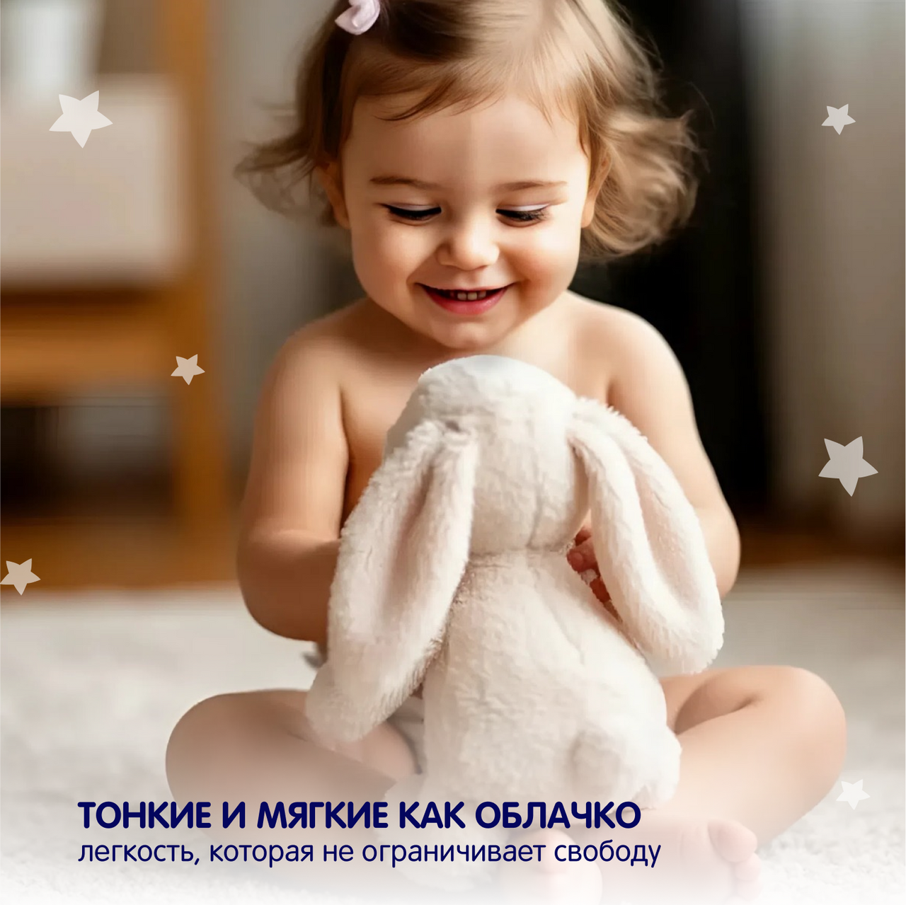 В изготовлении подгузников используется японский абсорбент, который быстро впитывает и удерживает влагу, поддерживая сухость в течение длительного времени. Прилегающий к телу поясок - Эластичный поясок мягко и плотно облегает талию малыша, препятствует подтеканию жидкости вдоль спины. Новый дышащий нижний слой - Моментально распределяет влагу внутри и не дает ей слеживаться, защищает нежную кожу малыша от возникновения раздражений, оставляя ее сухой и чистой. Невидимый абсорбирующий слой - Уникальный состав среднего впитывающего слоя обеспечивает быстрое впитывание жидкости и сухую поверхность подгузника, защищая кожу малыша от покраснений.