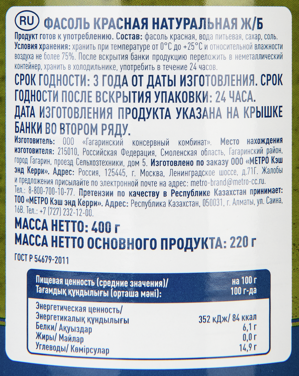 Натуральная красная фасоль Metro Chef изготовлена из свежей фасоли сорта kidney. Традиционно используется для приготовления ароматного грузинского лобио, также добавляется в блюда с рисом, в супы, рагу и салаты.