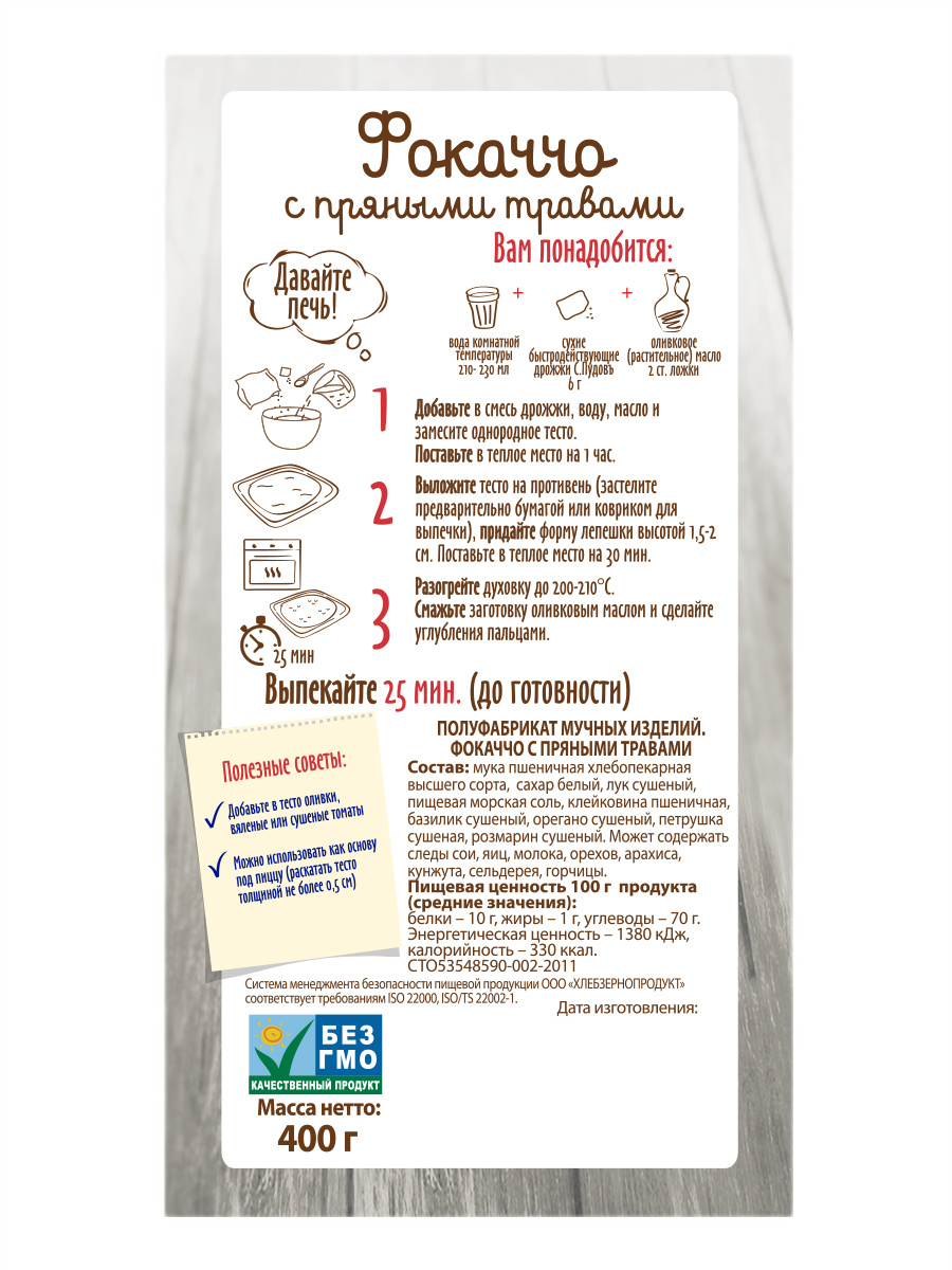 Смесь для выпечки С.Пудовъ для фокаччо с пряными травами, 400г