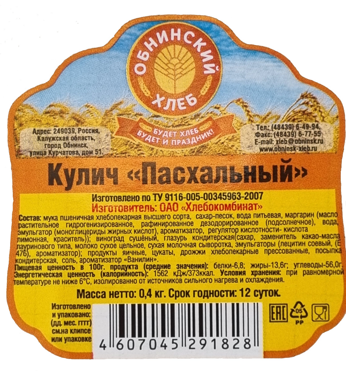 В нашей пекарне мы не используем готовые смеси и химические добавки, как на больших производствах, все компоненты тщательно подобраны нашим технологом: натуральное сливочное масло, фермерское молоко и сливки, качественная пшеничная мука, натуральная ваниль, шафран, белковая глазурь и главный секрет - наши пекари, которые готовят для вас эти куличи с любовью.