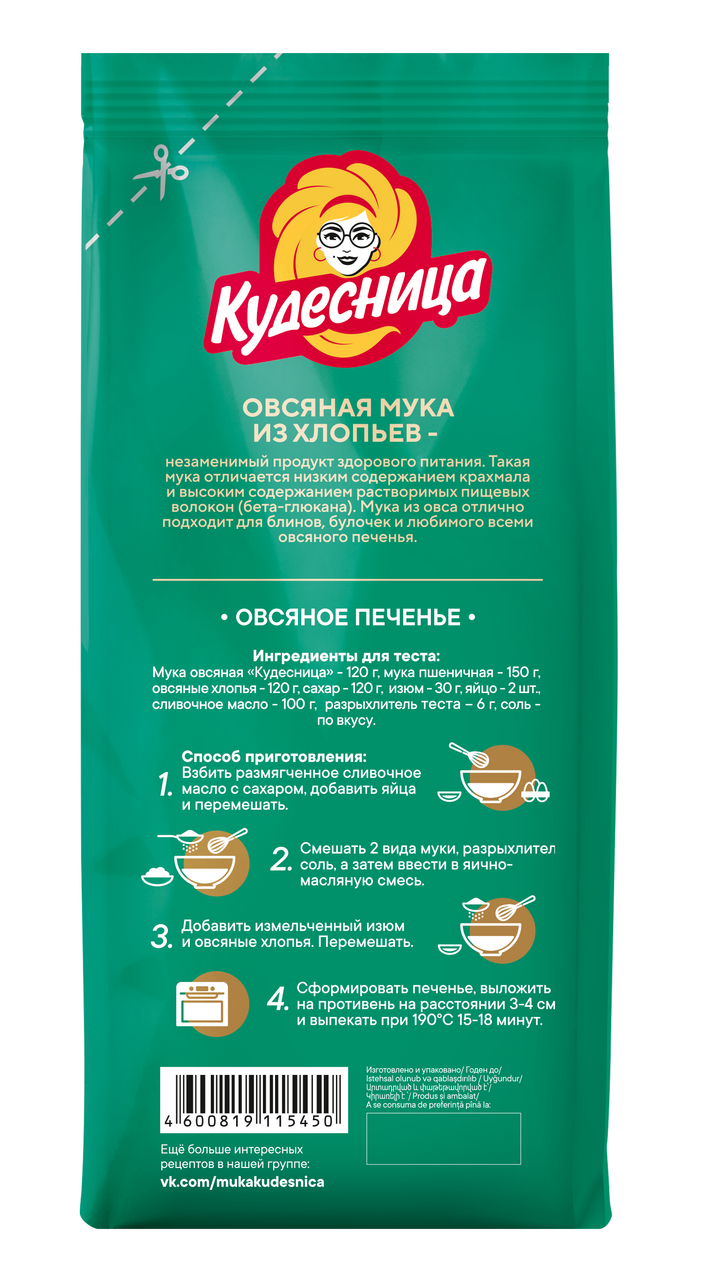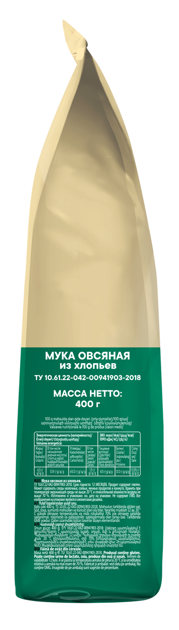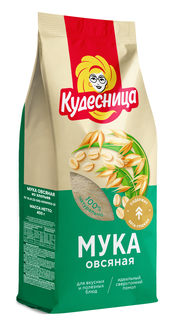 Незаменимый продукт здорового и диетического питания. Такая мука отличается низким содержанием крахмала и высоким содержанием растительных пищевых волокон и жира. В овсяной муке присутствуют необходимые аминокислоты, а также витамины групп А, В, Е и микроэлементы, среди которых кремний, играющий особую роль в обмене веществ и поддержании стройности. Мука из овса отлично подходит для блинов, булочек и любимого всеми овсяного печенья.