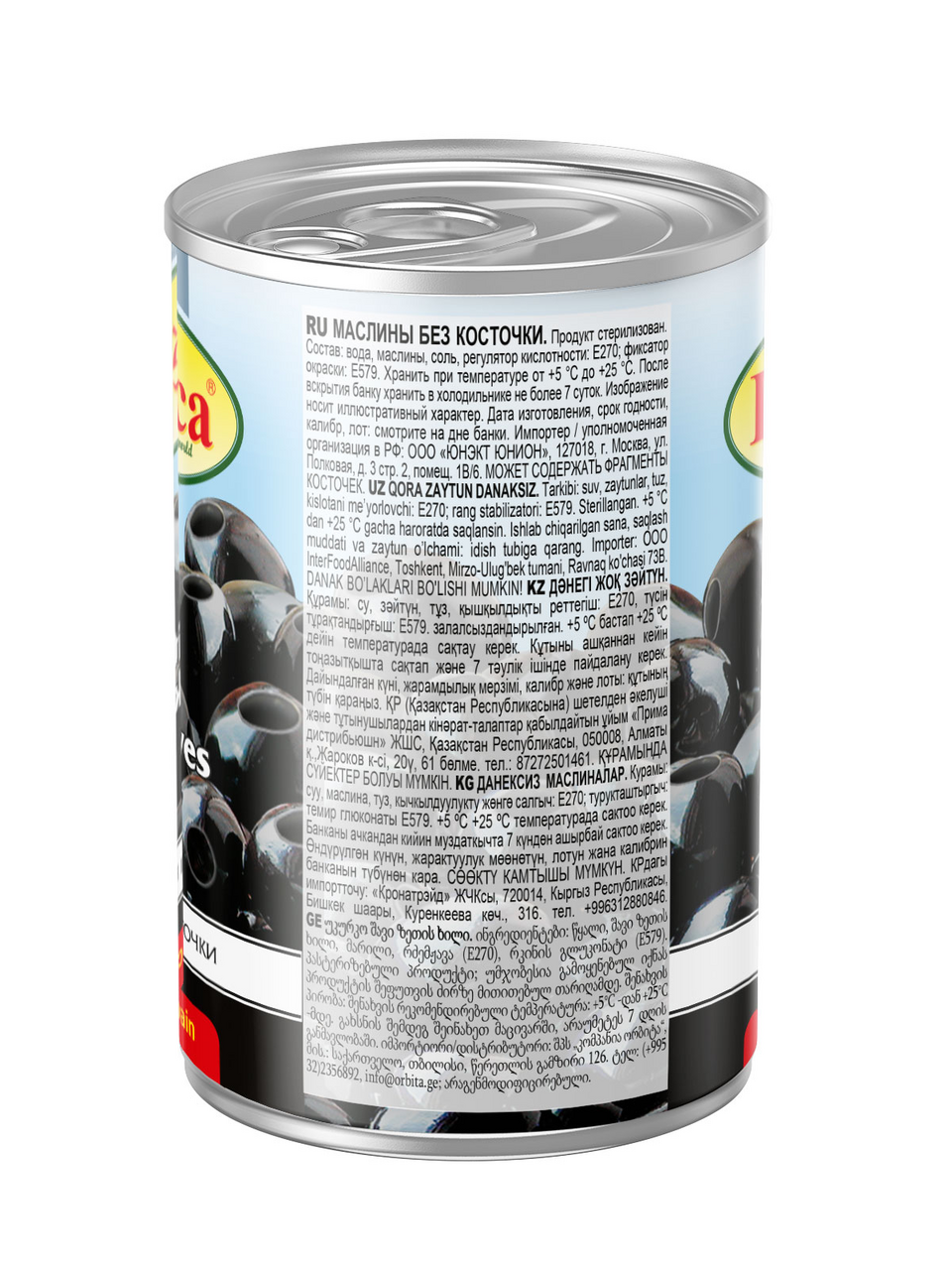 Маслины, вода, соль, регулятор кислотности Е270, фиксатор окраски Е579.