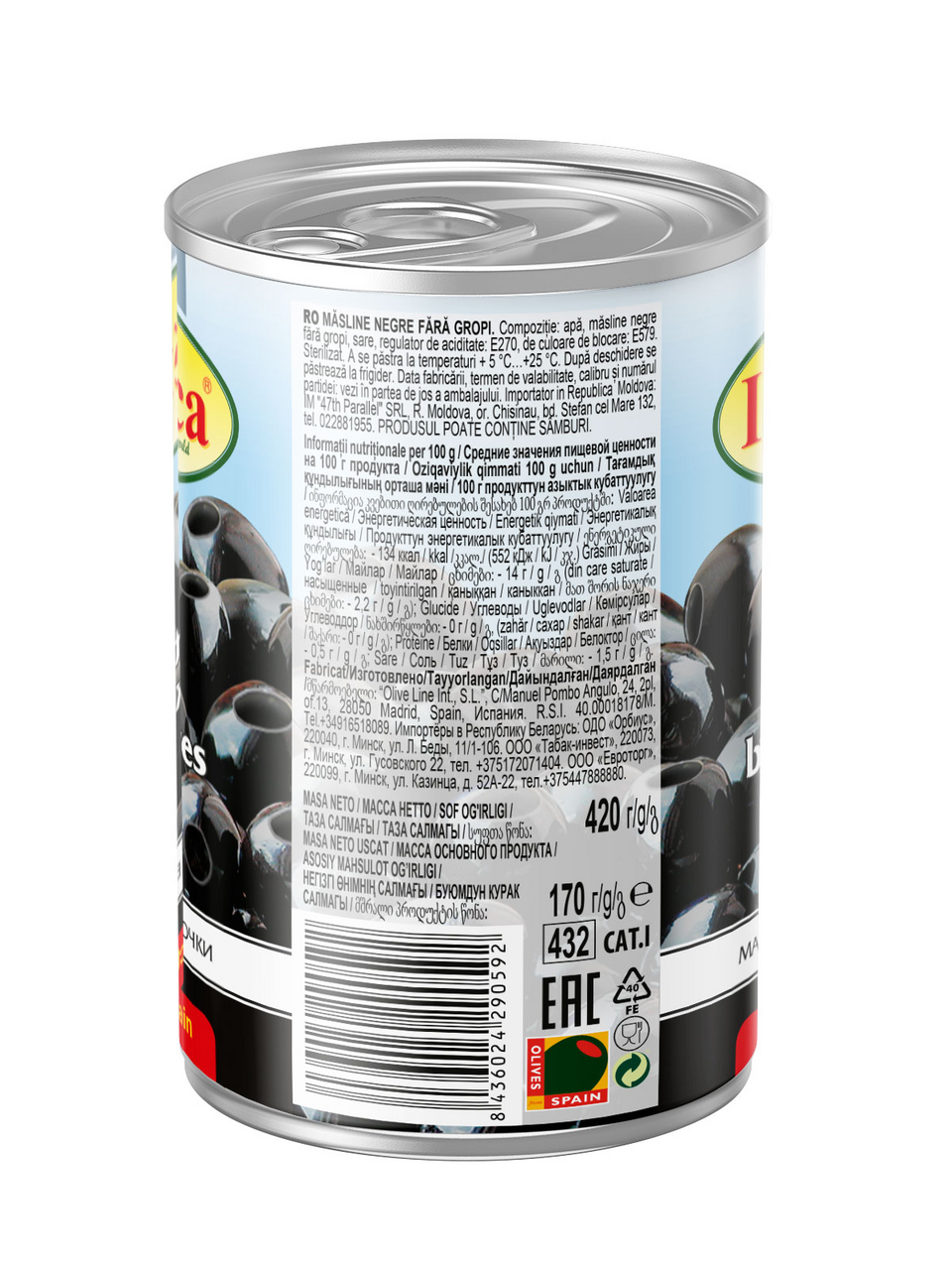 Маслины без косточки Iberica - это идеальное дополнение к вашему столу. В каждой банке содержится 420 грамм отборных маслин. Маслины, произведенные в Испании, отличаются своим насыщенным вкусом и высокой качеством. Маслины без косточки идеально подходят для приготовления различных блюд: салатов, закусок, пиццы, пасты и других кулинарных шедевров. Крупные и черные маслины без косточки не только вкусные и полезные но и способны дополнить и украсить любое блюдо от салатов до супов.