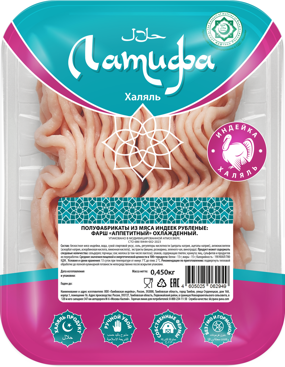 Фарш из индейки Латифа Халяль Аппетитный охлажденный, 450г