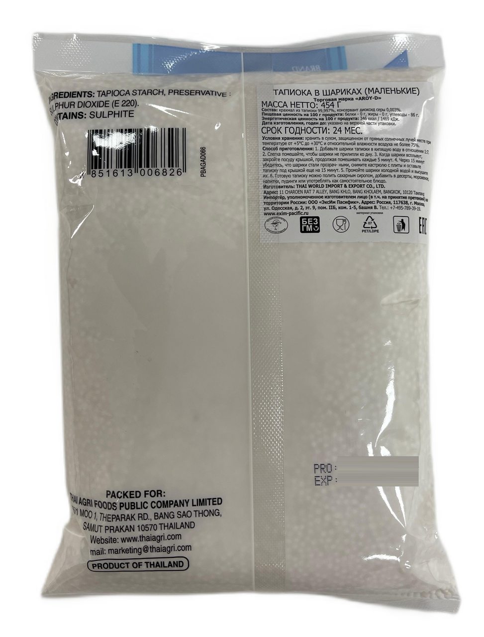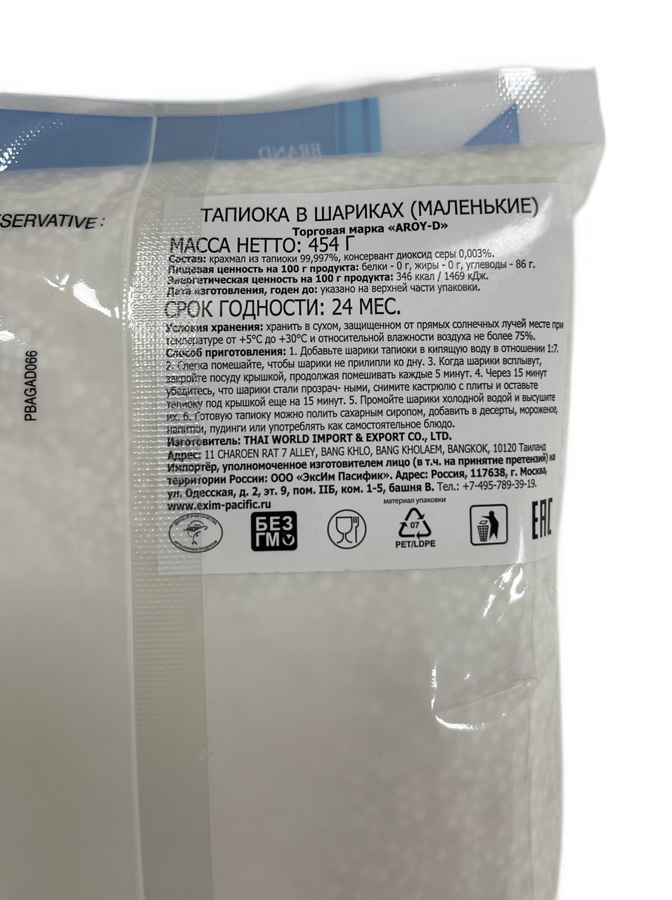 Маленькие шарики из тапиокового крахмала - традиционный азиатский продукт. Тапиоковые шарики станут основой оригинального десерта, пудинга, топпинга к мороженому, тортам. Тапиоковый крахмал может использоваться в качестве альтернативы пшеничной муке в готовке безглютенового хлеба, лепешек и другой выпечки. Также его используют в качестве загустителя для соусов. Этот продукт содержит только натуральные ингредиенты и не содержит ГМО, яиц, искусственных красителей, консервантов и пальмового масла. Это маленькие, легкие и воздушные шарики из тапиоки, которые идеально подходят для приготовления бабл ти. Это продукт, который прекрасно насытит вас на долгое время. Каждый шарик тапиоки имеет нежный вкус и неповторимую текстуру, которые делают его настоящим удовольствием для ваших вкусовых рецепторов. Тапиока в шариках легко и быстро готовится. Просто следуйте инструкциям на упаковке, чтобы приготовить свою идеальную порцию бабл ти. Добавьте тапиоку в кипящую воду и варите до готовности. Затем промойте шарики холодной водой и добавьте их в свой любимый напиток или десерт. Этот продукт отличается высоким качеством и свежестью. Он не содержит искусственных красителей, ароматизаторов или консервантов, что делает его безопасным и полезным для потребления. Тапиока в шариках также является отличным источником энергии и не содержит глютена, что делает его идеальным выбором для людей с пищевыми ограничениями.