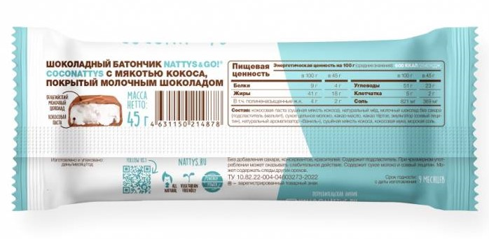 Это батончик с натуральной мякотью кокоса, покрытый слоем настоящего бельгийского молочного шоколада, без добавления сахара, очень вкусный, полезный и абсолютно натуральный перекус, который доставит много удовольствия и зарядит энергией. Нежное кокосовое удовольствие от Nattys всегда с собой, в удобной форме батончика to go — это вкусное и легкое лакомство, идеально для твоего полезного перекуса, без вреда для фигуры и здоровья, без сахара, создан из премиальных ингредиентов высшего качества, с честным и чистым составом. Nattys & Go — это чистый заряд энергии и насыщение на длительное время.