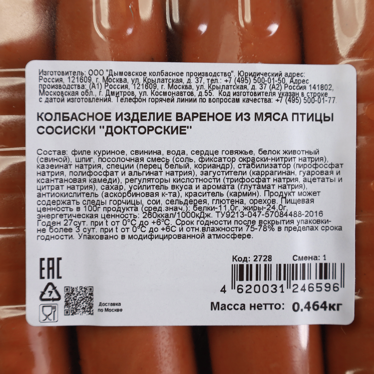 Сосиски Дымов Докторские, 464г