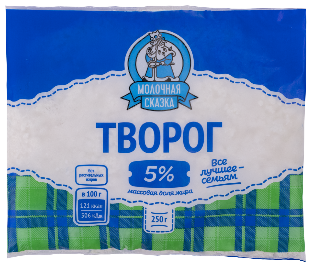 Творог Молочная сказка 5%, 250г богат кальцием, фосфором и молочным белком, при этом легко усваивается и переваривается. Содержащиеся в нем компоненты полезны для формирования костной системы, благоприятно действуют на организм при болезнях сердца, почек, гипертонии и других заболеваниях.