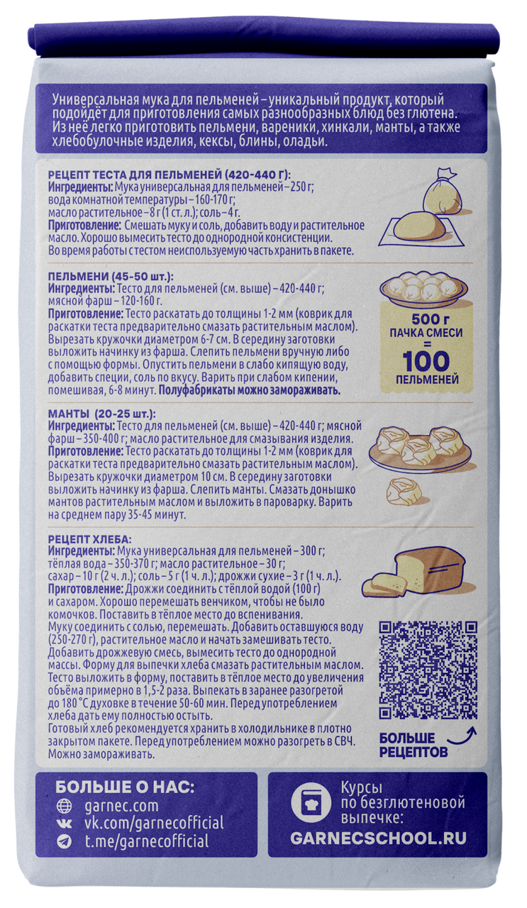 Мука Garnec универсальная для пельменей без глютена, 500г