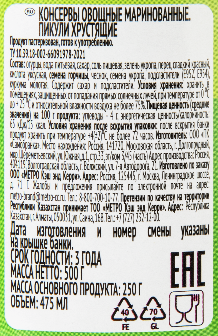 Маленькие аппетитные пикули так же хороши и на вкус: отборные хрустящие огурчики и хорошо подобранный букет из зелени и специй украсят любое застолье.