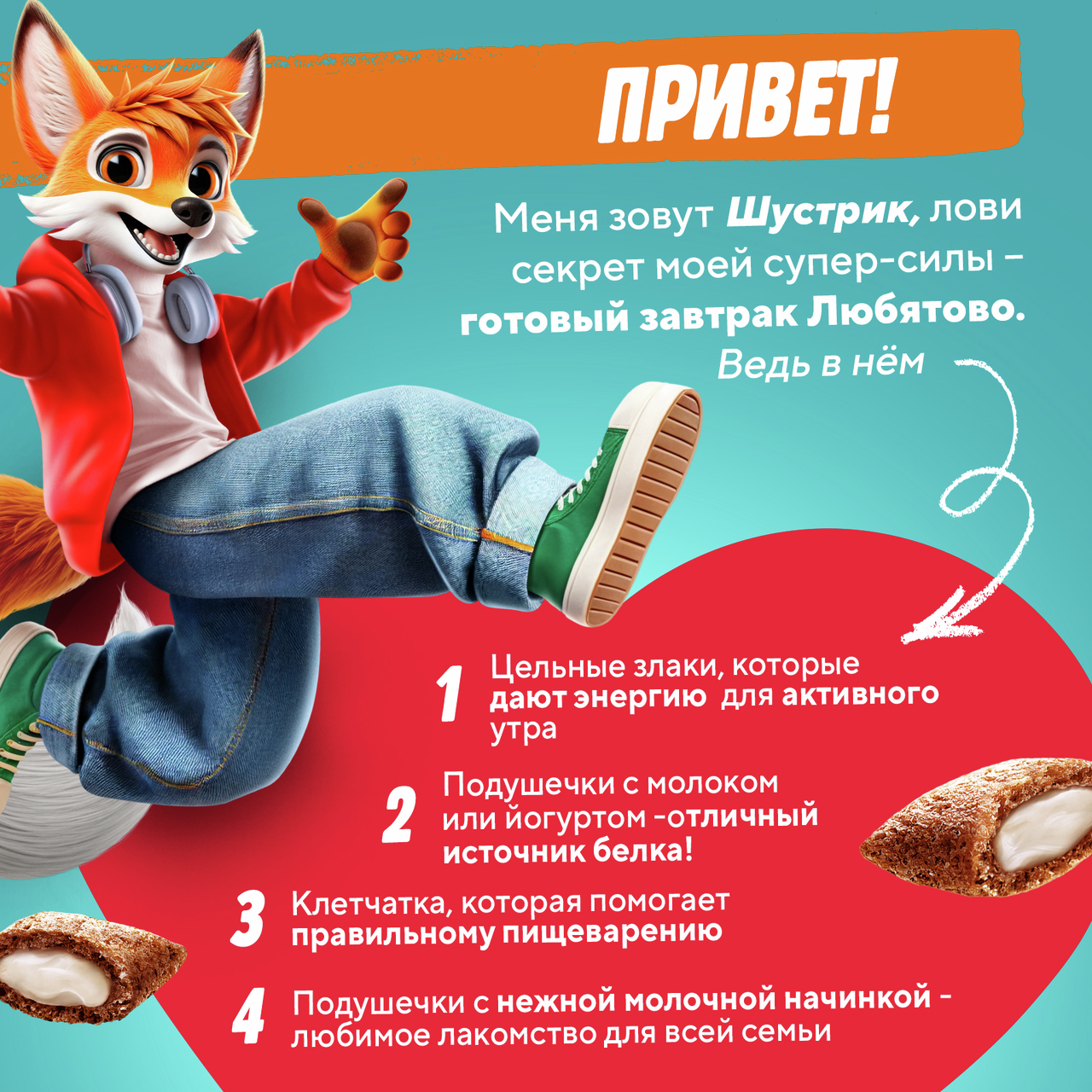 Подушечки с молочной начинкой для вкусного завтрака и перекуса. Без красителей и консервантов. Цельное зерно, входящее в состав подушечек, делает этот готовый завтрак невероятно питательным, а тающая начинка - потрясающе вкусным. Вот почему их так любят и дети, и взрослые, с молоком или просто с чаем.