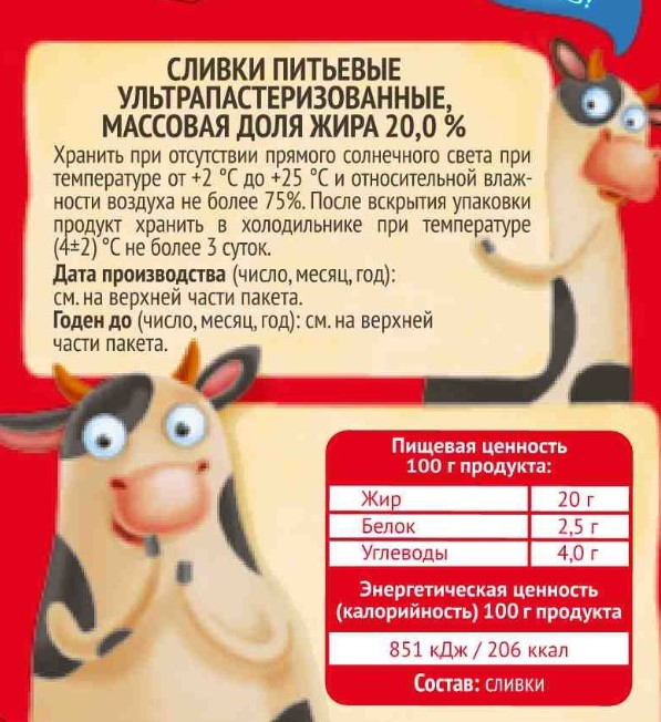 Сливки Три коровы два кота ультрапастеризованные ГОСТ 20%, 500г