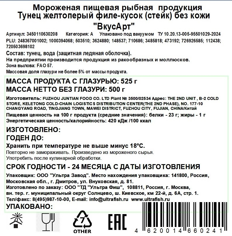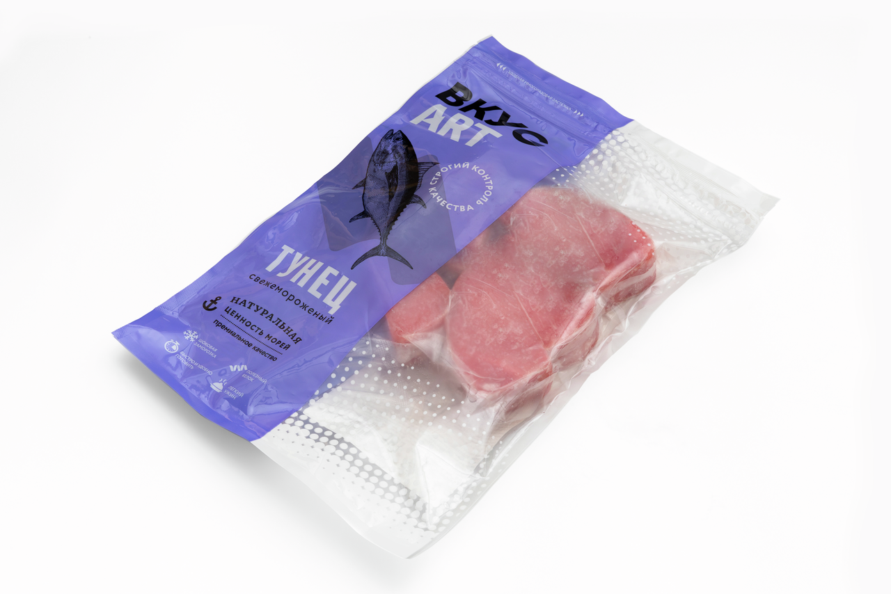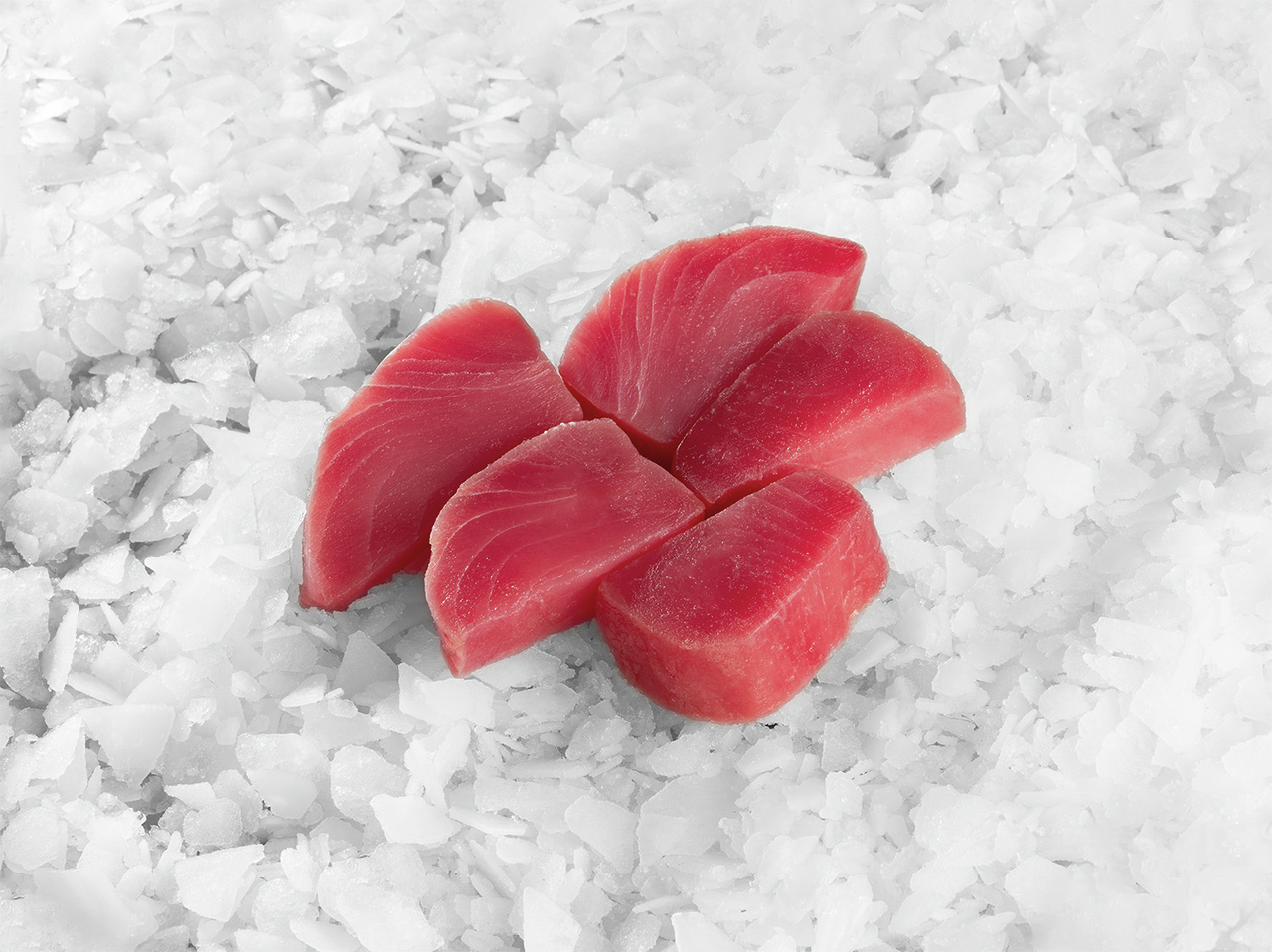 Тунец - морская рыба, относящаяся к семейству скумбриевых. Его мясо ценится за высокое содержание белка, Омега-3 жирных кислот, витаминов, макро- и микроэлементов. Оно отличается плотной текстурой и красноватым цветом, поэтому его часто сравнивают с телятиной. Филе тунца, очищенное от кожи, подвергается шоковой заморозке, позволяющей сохранить максимум полезных свойств. В тунце много йода, калия, селена. Он благотворно влияет на нервную систему, на работу мозга, предупреждает процессы старения и улучшает метаболизм в организме. Тунец полезен для работы пищеварительной системы, укрепляет кости и регулирует сахар в крови.