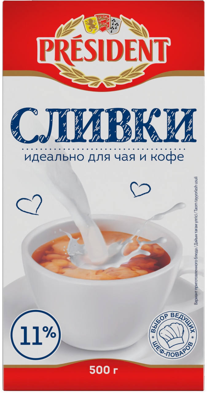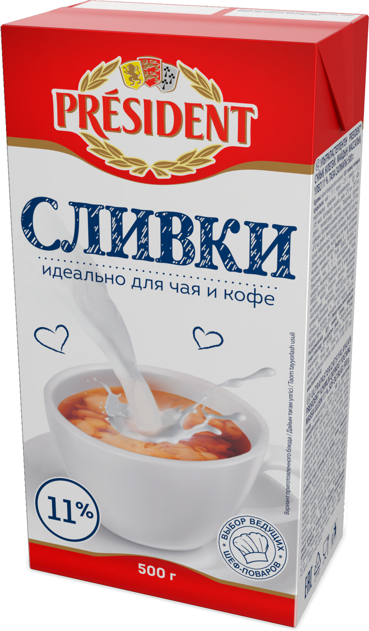 Сливки President ультрапастеризованные питьевые 11%, 500г имеют особый сливочный вкус и нежную текстуру, идеально подходят для добавления в чай и кофе. Многие известные коктейли просто невозможно приготовить без использования питьевых сливок. Нередко сливки применяют при изготовлении различных кулинарных изделий, например, соусов, муссов, маринадов и заправок. Особое место продукт занимает в кондитерском и пекарном производстве, входит в состав оригинальных десертов, а также некоторых сладких изделий и мороженого.