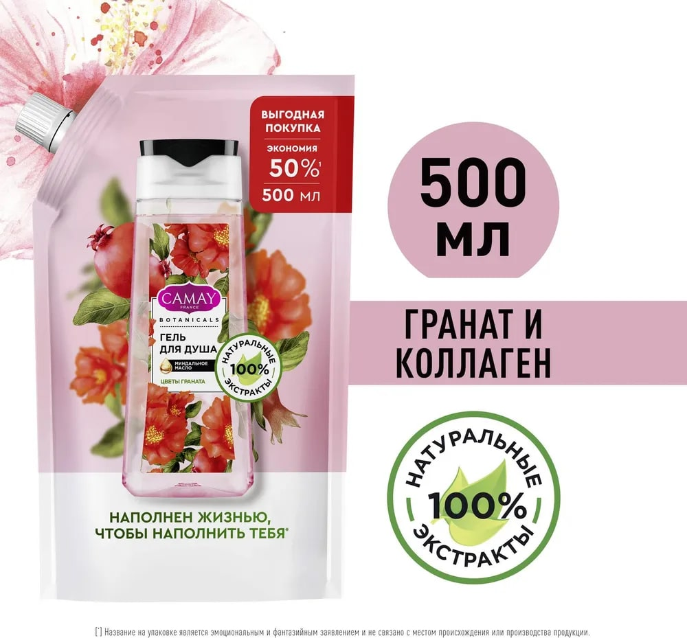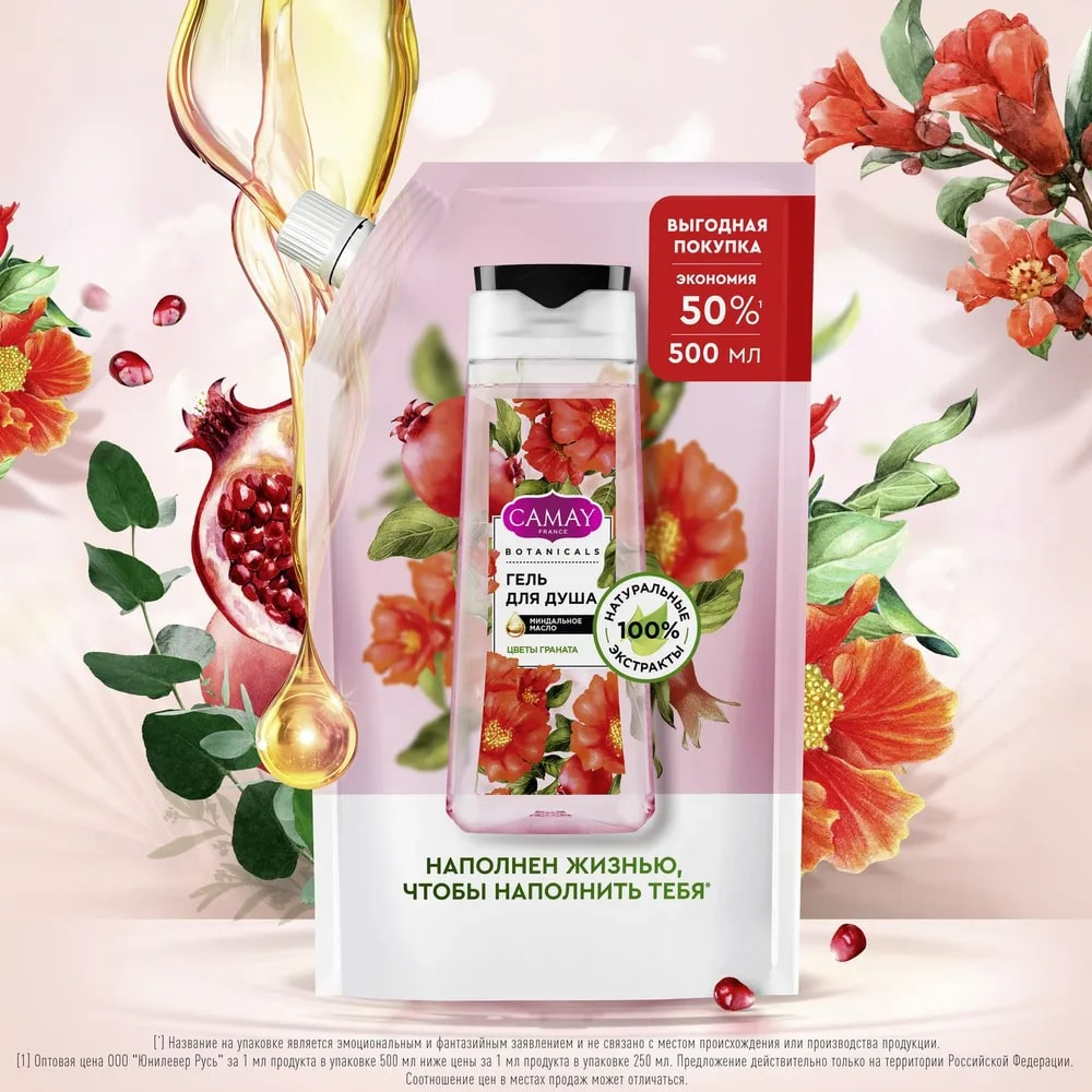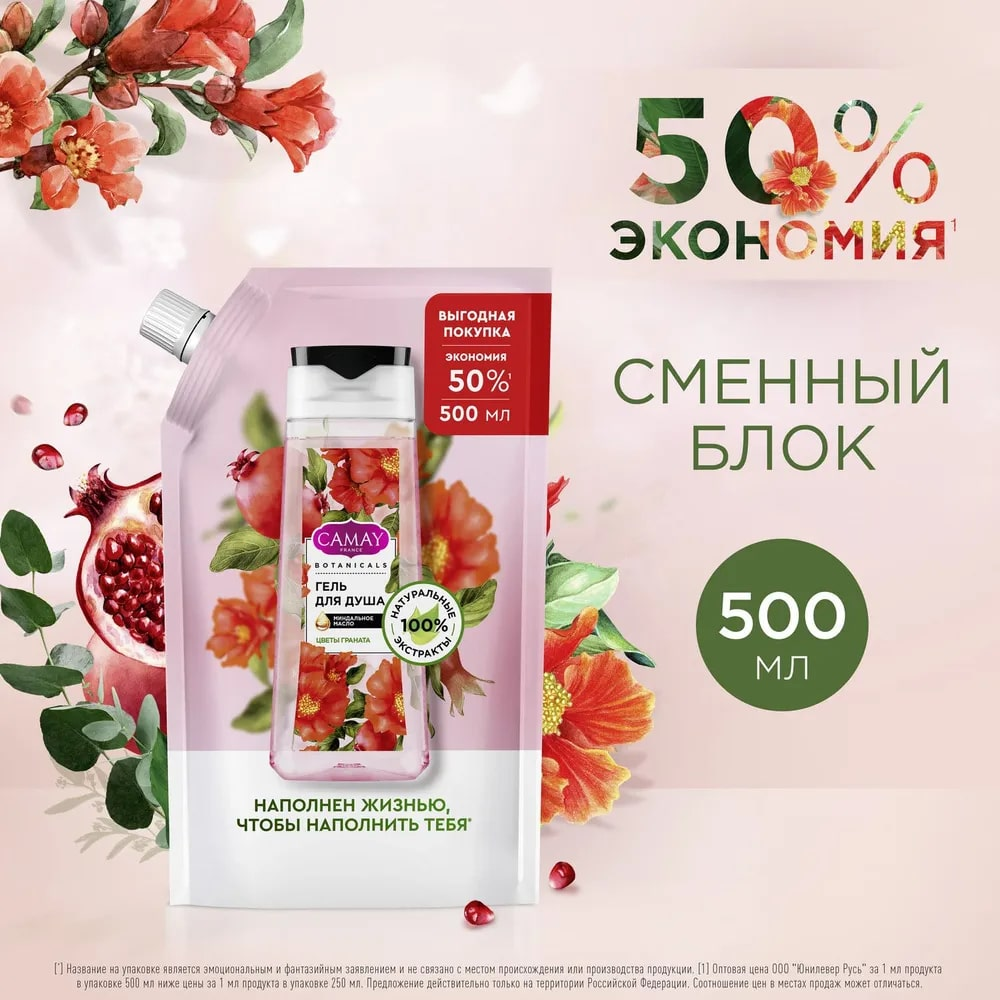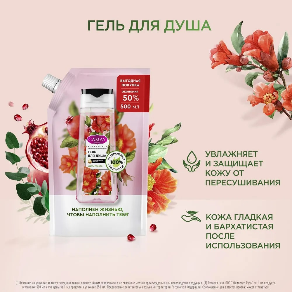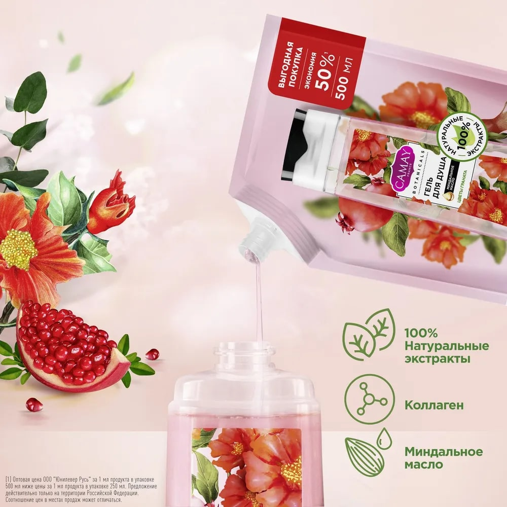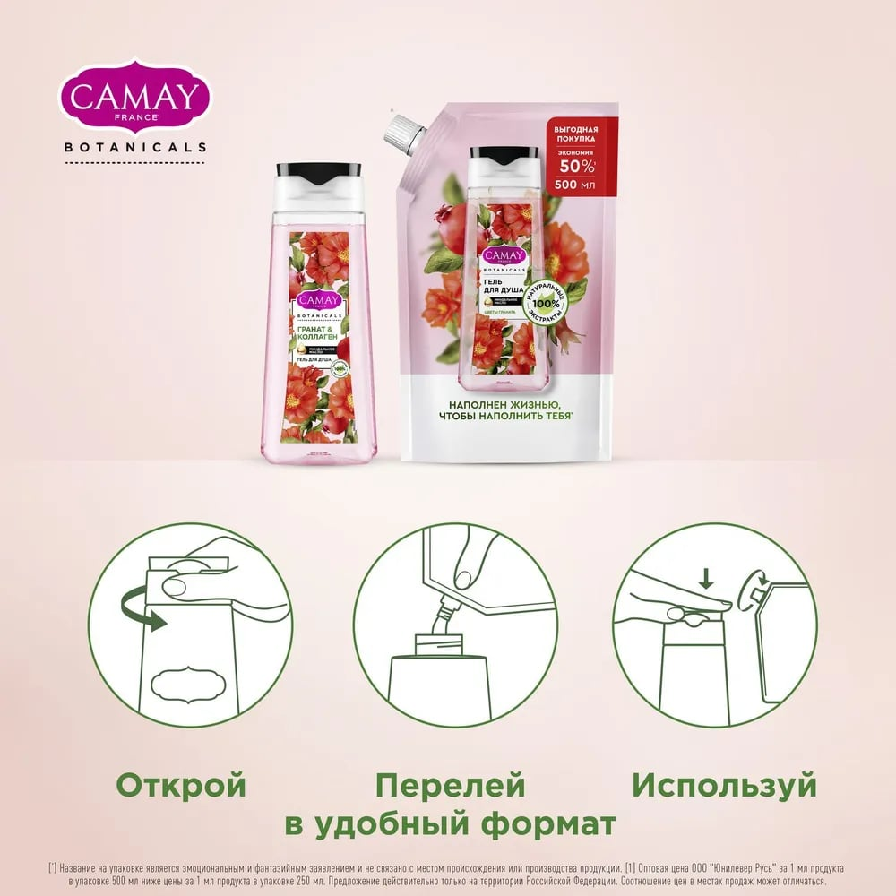 Гель для душа Camay Цветы Граната с коллагеном, 500мл