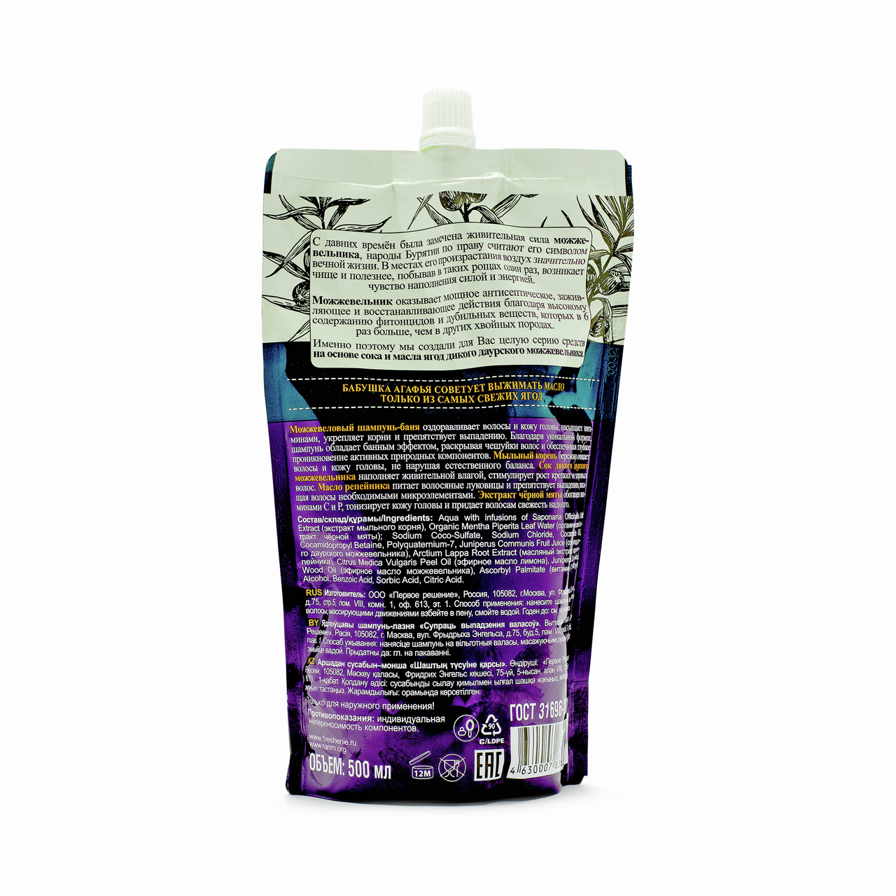 Шампунь-баня Рецепты бабушки Агафьи против выпадения волос можжевельник, 500мл