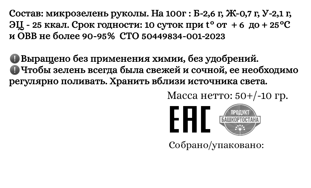 Богата минеральными веществами, содержит много йода и витамина С. Такой продукт способствует пищеварению и активизирует работу иммунной системы. Молодые листья рукколы используются в салатах, их можно подавать в качестве гарнира к мясным и рыбным блюдам. Она отлично сочетается с мясом, рыбой и морепродуктами, бобовыми и сырами.