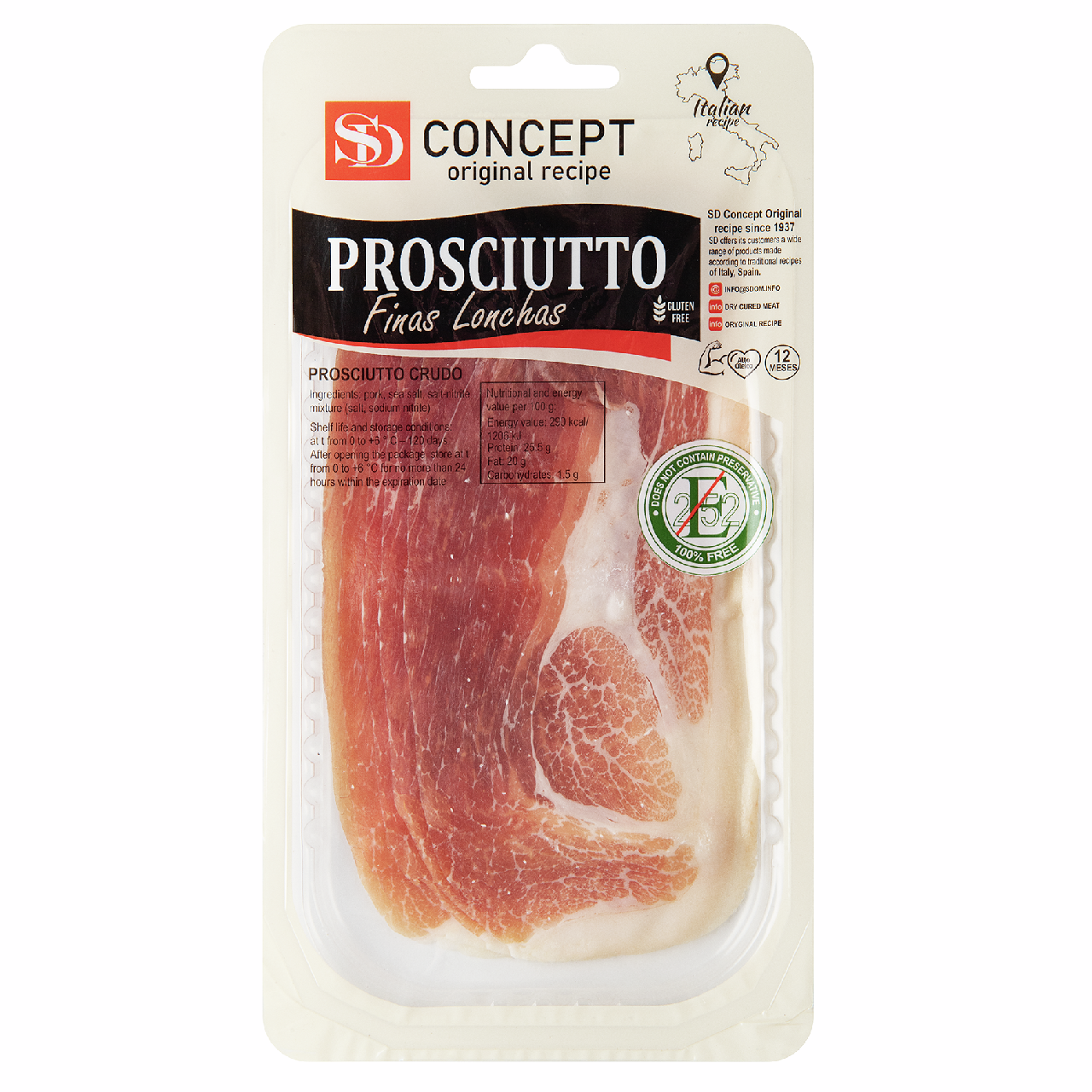 Это деликатес из свинины, гастрономический шедевр, завоевавший любовь миллионов людей во всем мире. Для его приготовления используется только отборное мясо, которое засаливаем и оставляем для созревания. Чем больше срок с созревания, тем вкуснее продукт. Имеет нежный, изысканный вкус, цвет среза от жемчужно-розового до светло-красного. Рекомендуется нарезать тонкими ломтиками и подавать с дыней, тыквой или инжиром, из напитков можно выбрать красноесухоевино. Это изысканный деликатес, который порадует даже самых искушенных гурманов. Прошутто обладает нежным, изысканным вкусом и потрясающим мясным ароматом. Рекомендуется подавать с дыней, тыквой или инжиром. Идеальным дополнением к прошутто станет красное сухое вино.