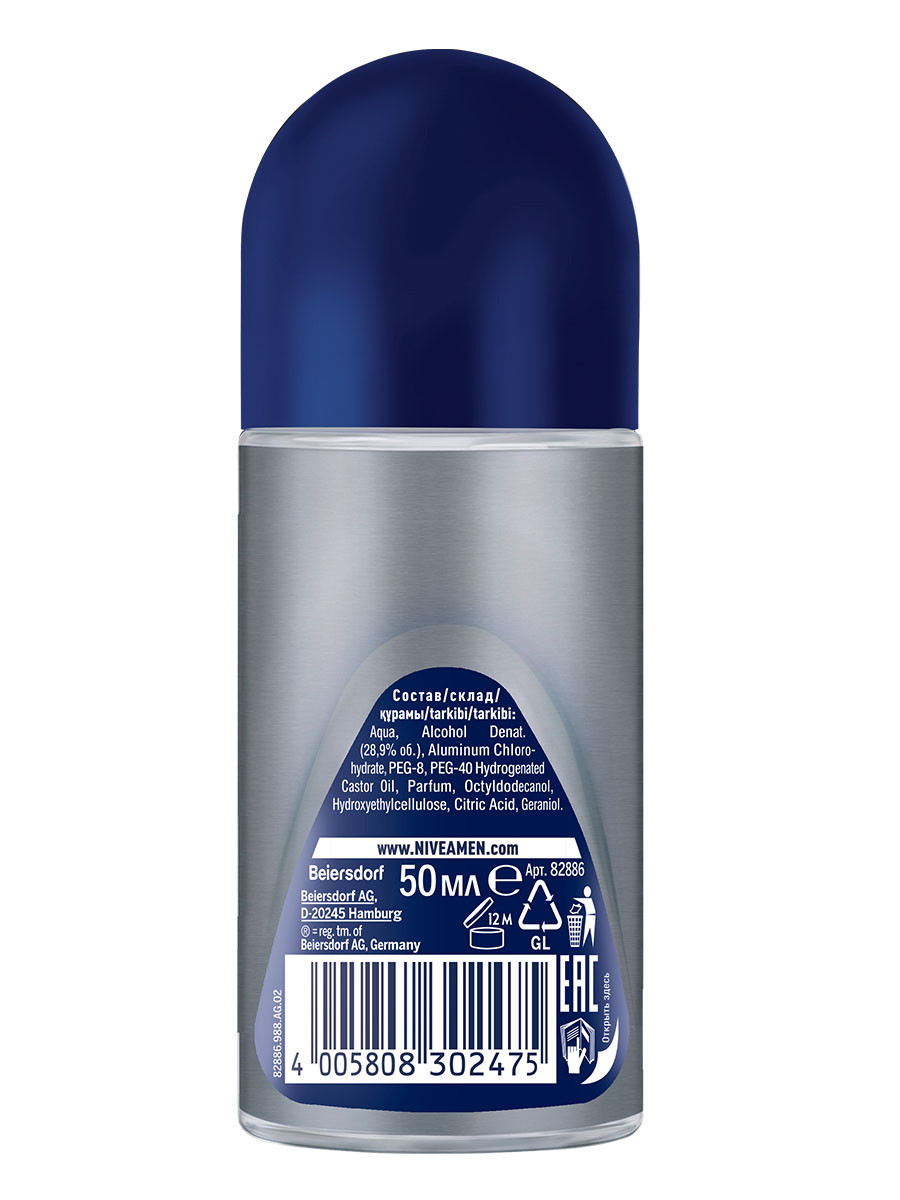 Не хватает свежести в течение дня, а концу дня ощущаешь неприятный запах? Дезодорант-антиперспирант ролик NIVEA MEN ARCTIC OCEAN обеспечит вас надежной защитой от неприятного запаха на срок до 48 часов. Стойкий мужской аромат и вихрь океанской свежести от NIVEA подарит ощущение чистоты и свежести на весь день. Специальная формула с защитой от раздражения удовлетворит высокие требования пользователя с самой чувствительной кожей. Продукт дерматологически протестирован. Только ощущение сухой и чистой кожи в течение всего дня. Сильная защита и забота о коже от NIVEA на каждый день! Шариковый антиперспирант даёт в 2 раза больше применений, чем спрей! Применение: нанести на чистую сухую область подмышек. Дать полностью высохнуть во избежание образования пятен на одежде. ��е наносить на поврежденную или раздраженную кожу.