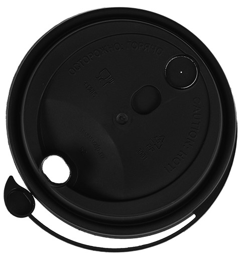 Черная матовая крышка для стакана со съёмным питейником. Питейник легко снимается и плотно закрывается, не позволяя напитку пролиться. Сохраняет напиток горячим на долгое время. Не имеет посторонних запахов.