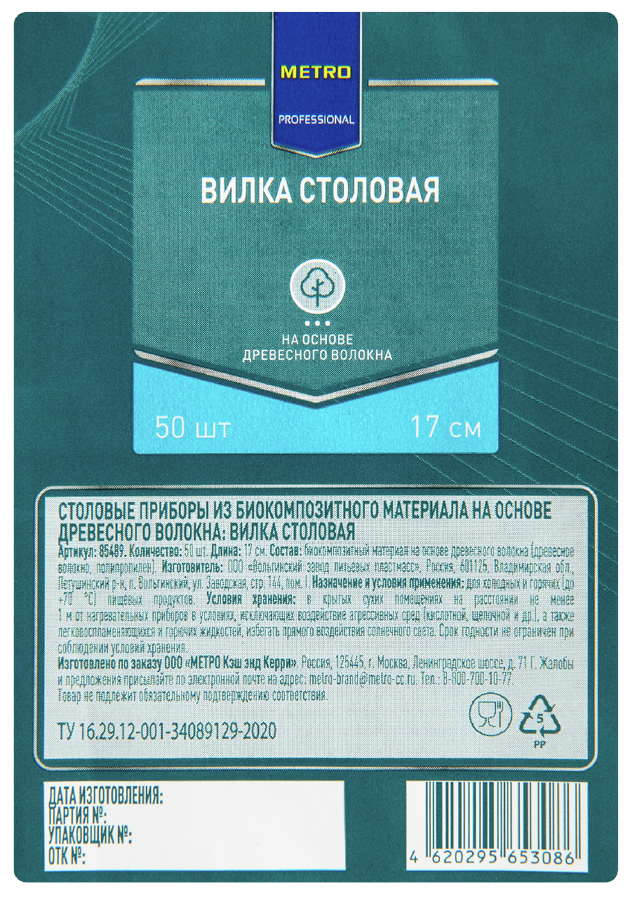 METRO PROFESSIONAL Вилка 168 мм древесное волокно, 50 шт. — высококачественная продукция, изготовленная из экологически чистого материала. Посуда не содержит в составе вредных веществ и красителей. Она предназначена для применения на предприятиях общепита и в быту, для организации кейтеринга и выездных мероприятий. Такую экологичную посуду выбирают те, кто следует принципам бережного отношения к экологии. При н��обходимости вилки из древесины можно персонализировать, нанеся логотип, бренд или рисунок. Использование экологичной посуды повышает статусность компании и доверие клиентов, а также положительно сказывается на имидже любого предприятия. В упаковке находится 50 вилок. Этого вполне хватит для большой компании.