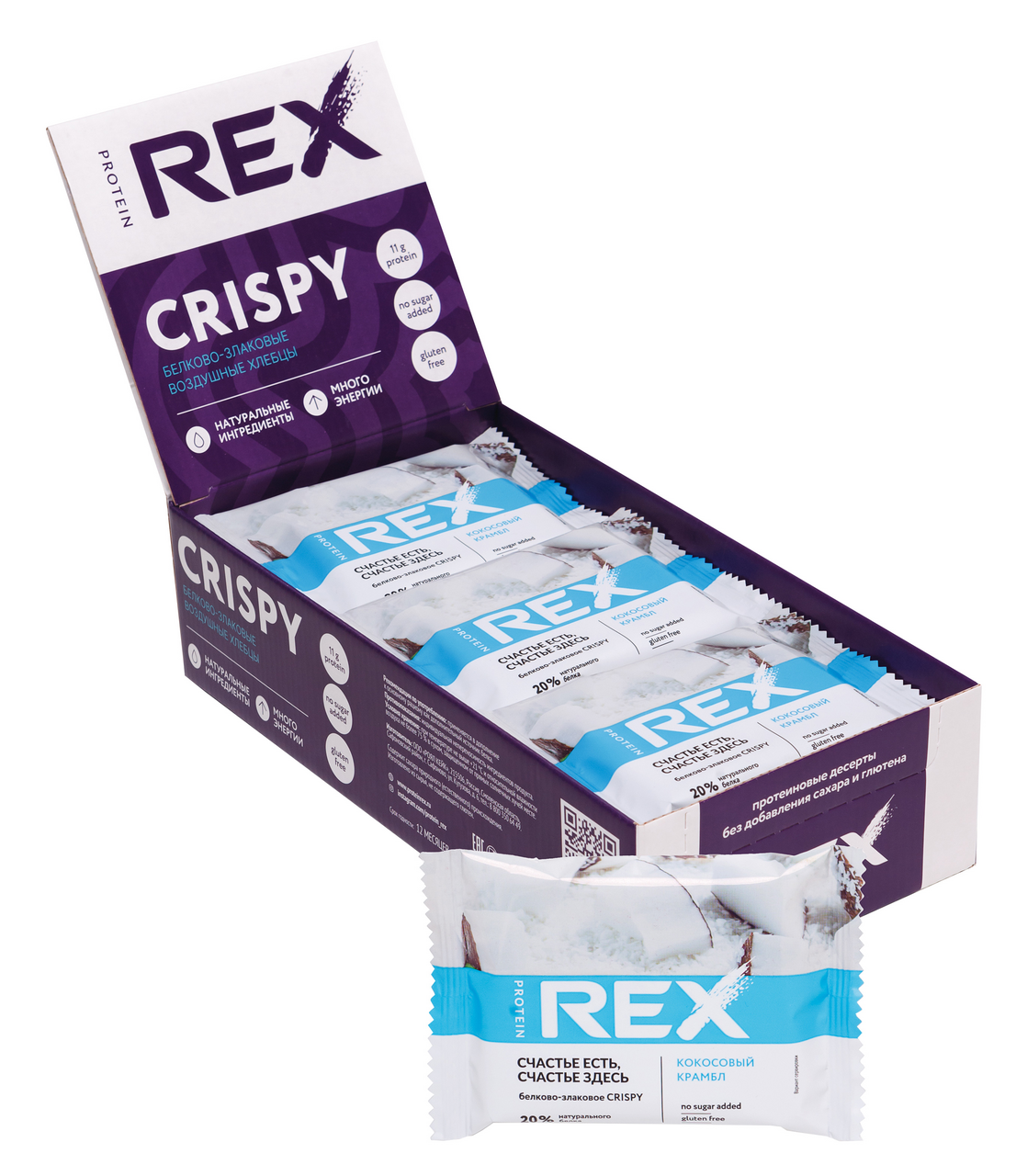 Хлебцы протеино-злаковые ProteinRex Crispy Кокосовый крамбл, 55г х 12 шт — это настоящая находка для сладкоежек, которые следят за своей фигурой. Обладая высокой питательностью они помогут справиться с чувством голода, а также заменят собой конфеты, печенье и другие лакомства, которые мы привыкли у потреблять в течение дня. Легкие и хрустящие хлебцы зарядят вас энергией и хорошим настроением. Поэтому они отлично подойдут для перекуса особенно перед тренировкой.