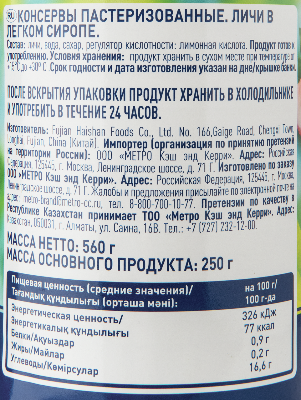 METRO Chef Личи в легком сиропе, 560г