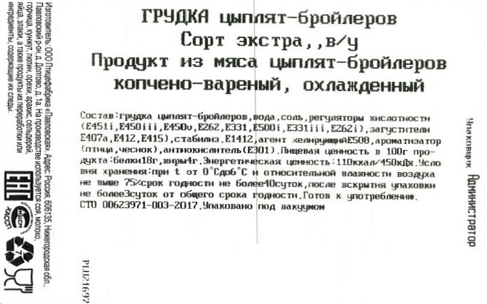 Грудка цыпленка-бройлера Павловская курочка варено-копченая, ~600г