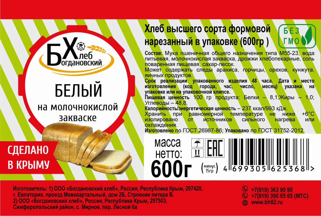 Хлеб Богдановский хлеб белый на молочной закваске нарезка, 600г