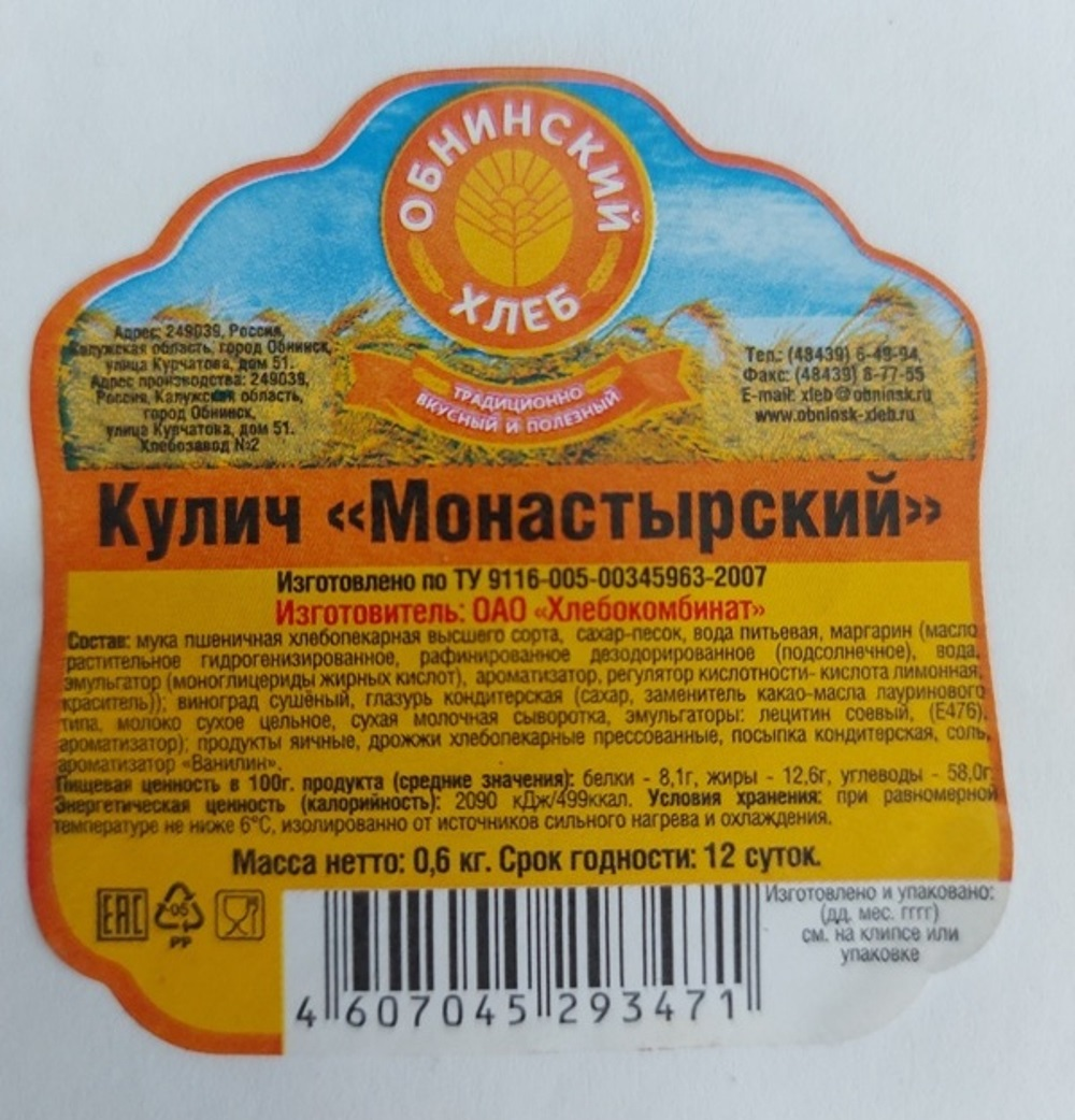 Мука пшеничная высшего сорта, сахар - песок, маргарин, вода питьевая, изюм, разрыхлитель: дрожжи хлебопекарные прессованные, молоко сухое обезжиренное, яичный порошок, соль поваренная пищевая, ароматизатор идентичный натуральному - ванилин.